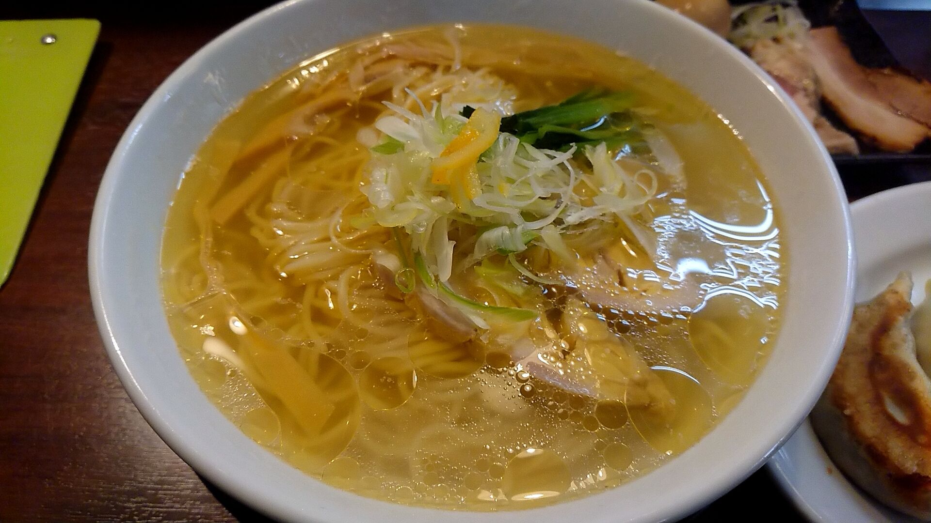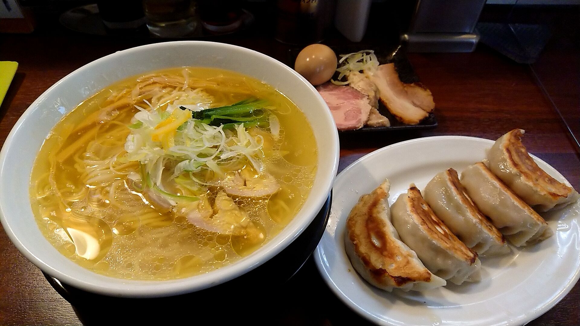 限定メニューも気になるが、ここはやはり有名なしおそばから特製しおそば大盛とジャンボ餃子にしてみました。