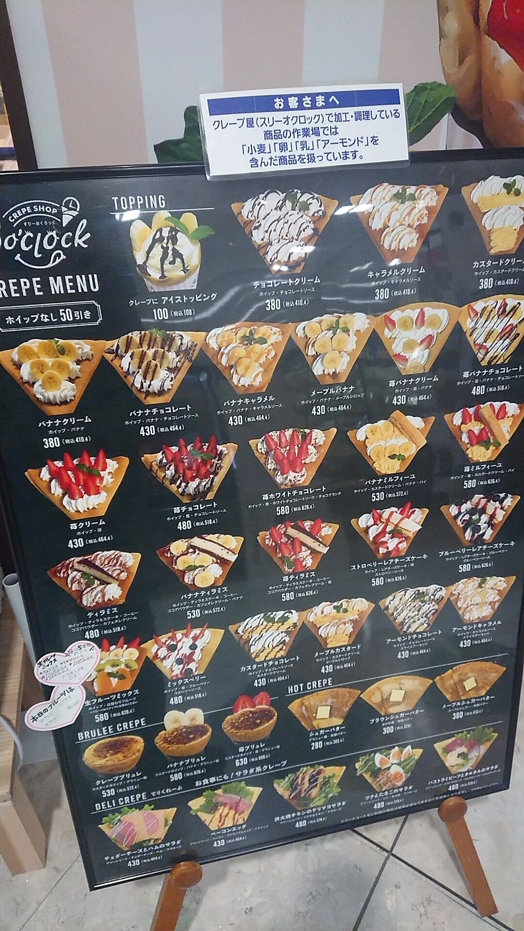 クレープの他にタピオカドリンクやフルーツサンドがあるらしいですが、今回はクレープにしようかな〜