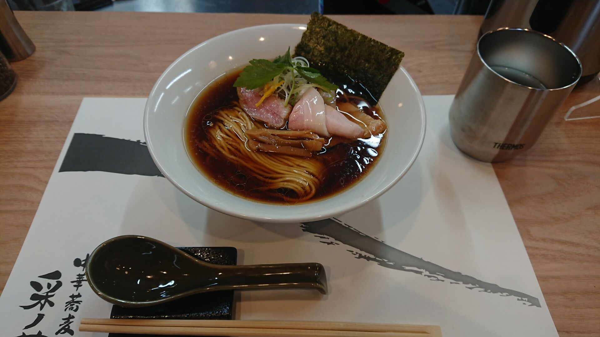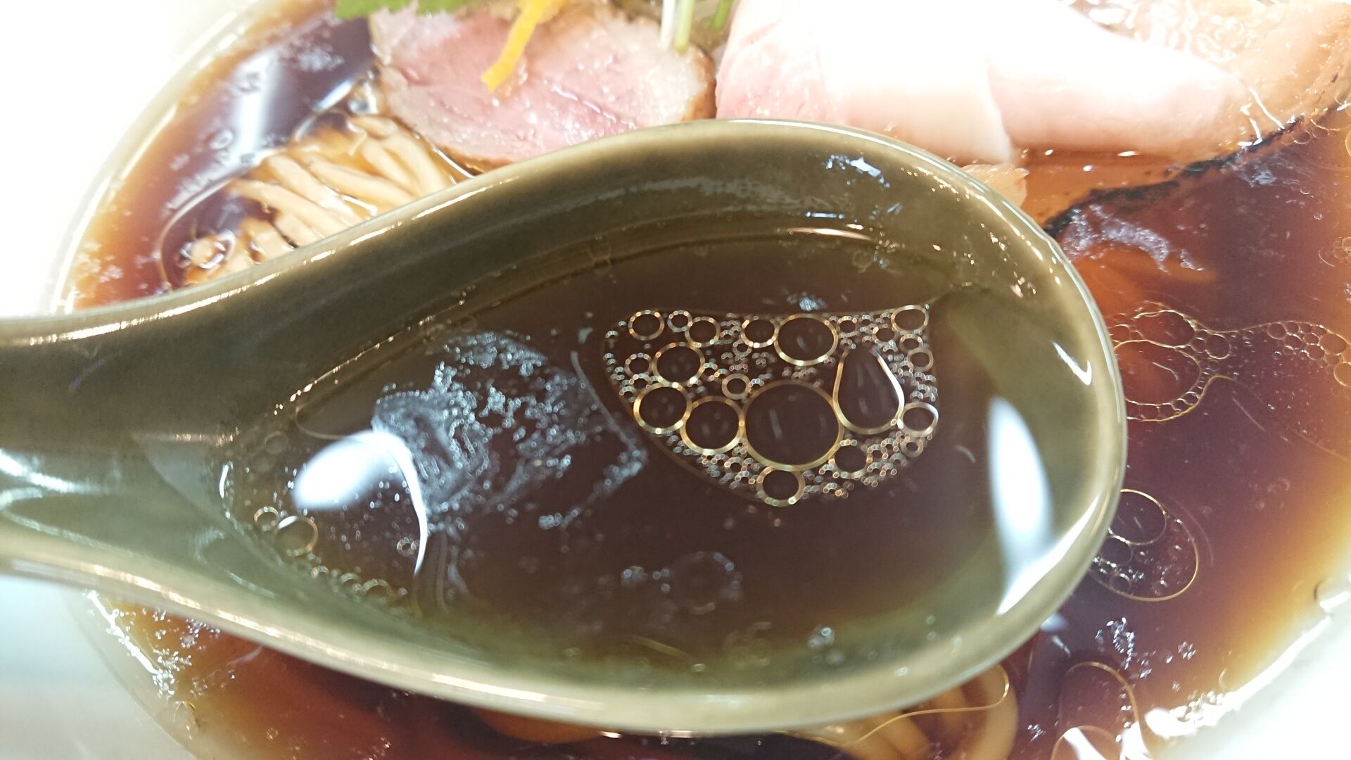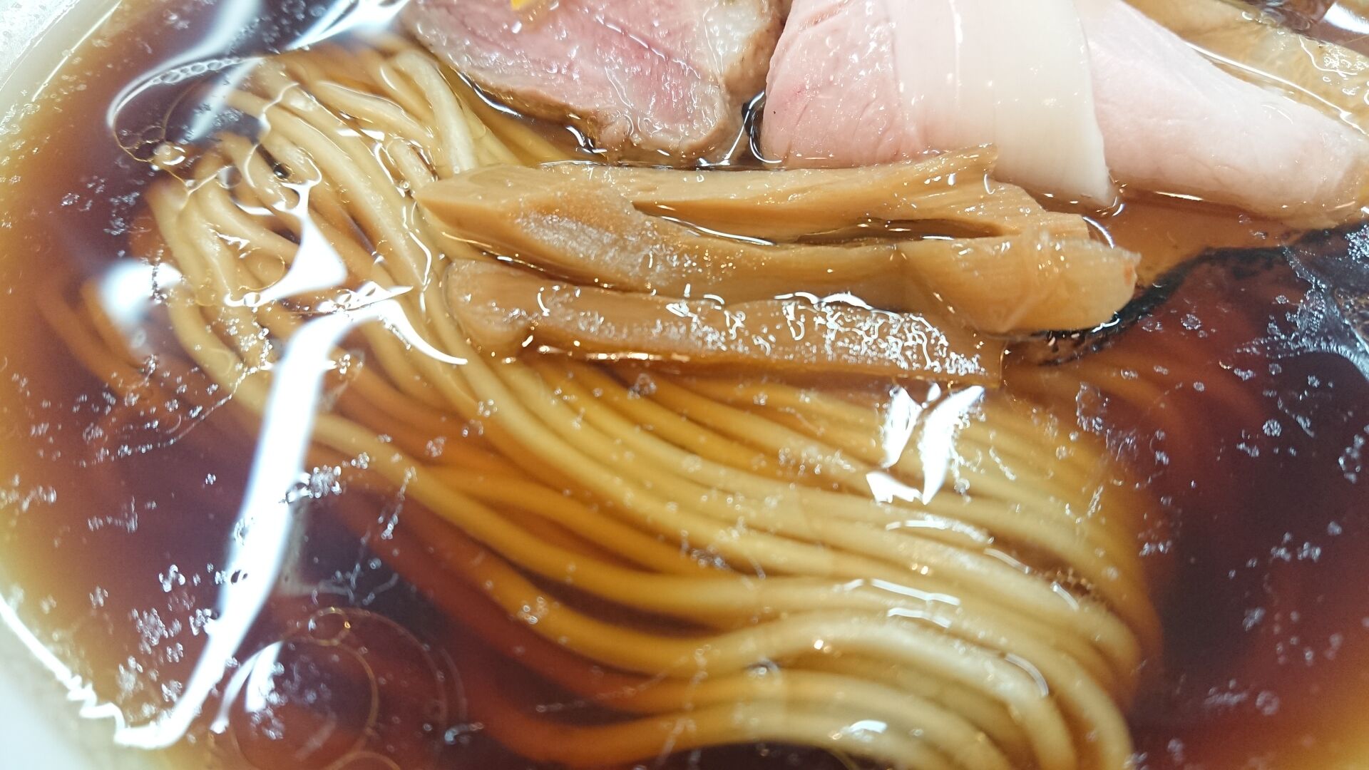 濃く深い醤油の色、浮かぶ香味油、具の盛付けも非常に綺麗。