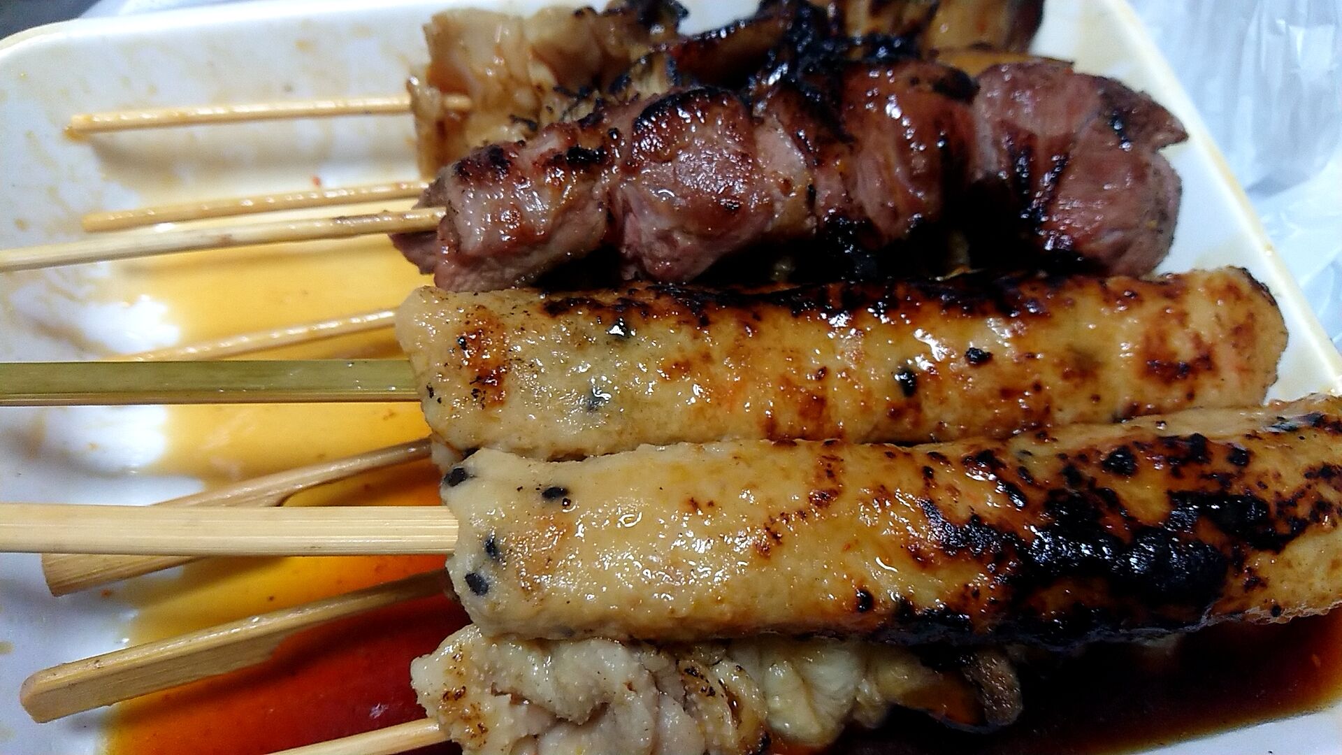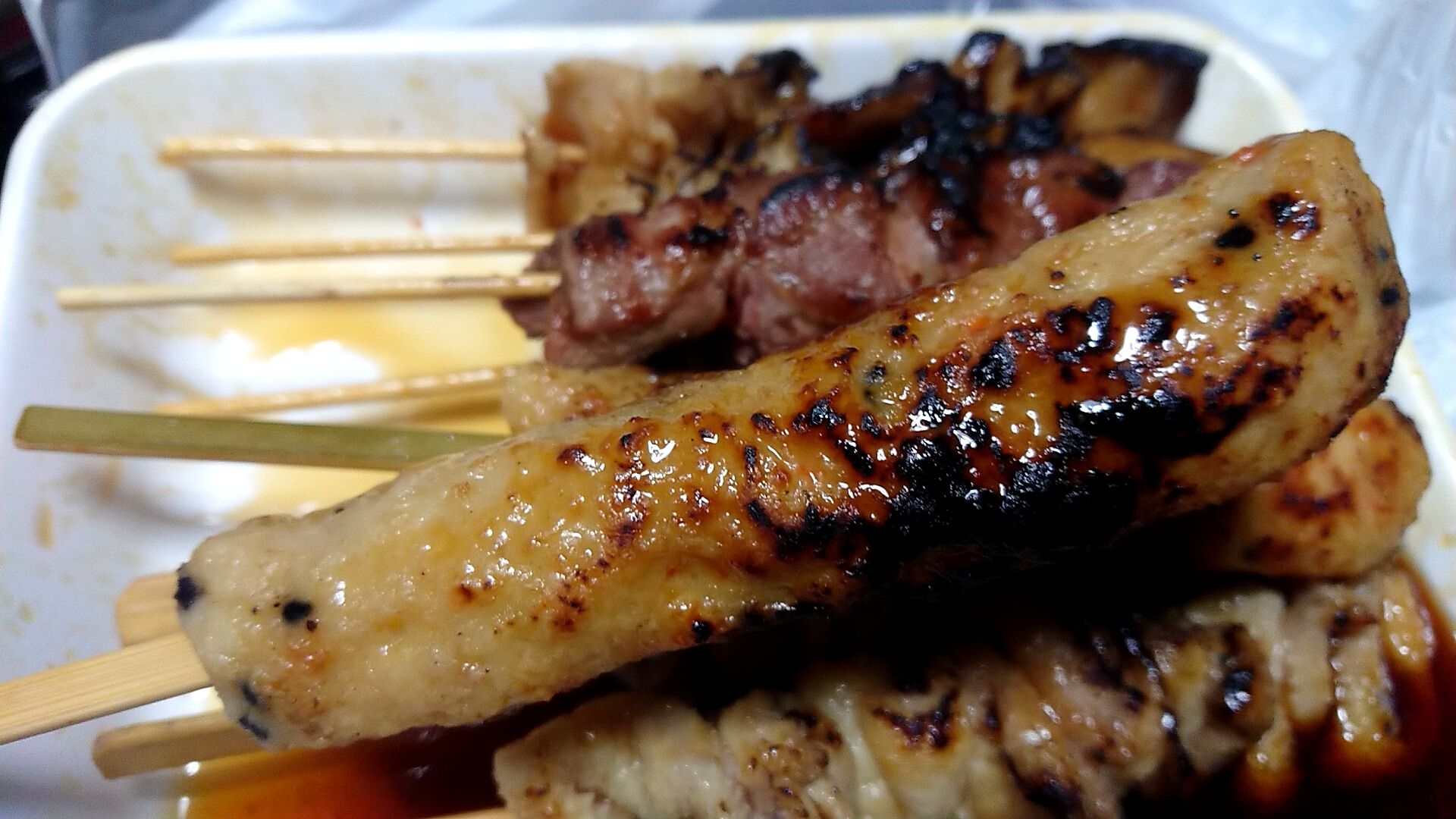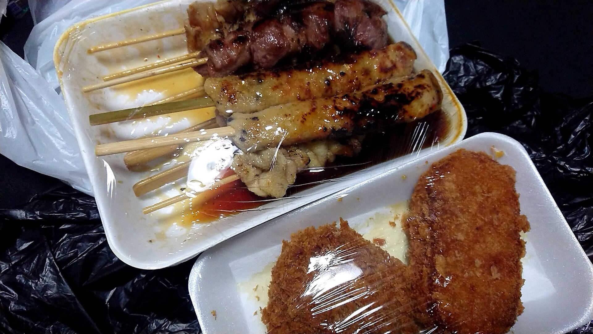 やきとり1串100円、コロッケもメンチカツも100円なので、これだけ買って1100円