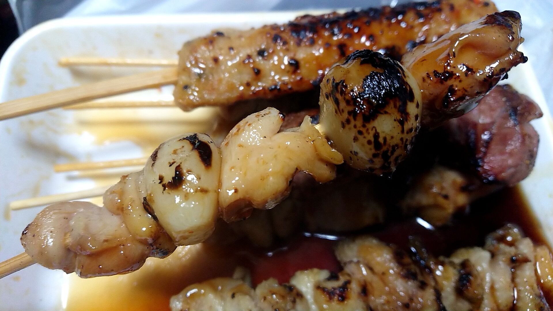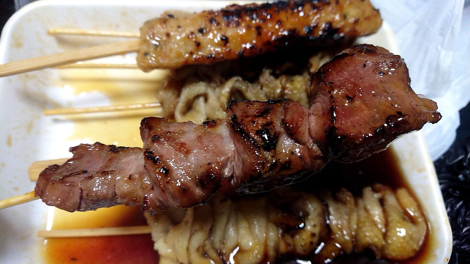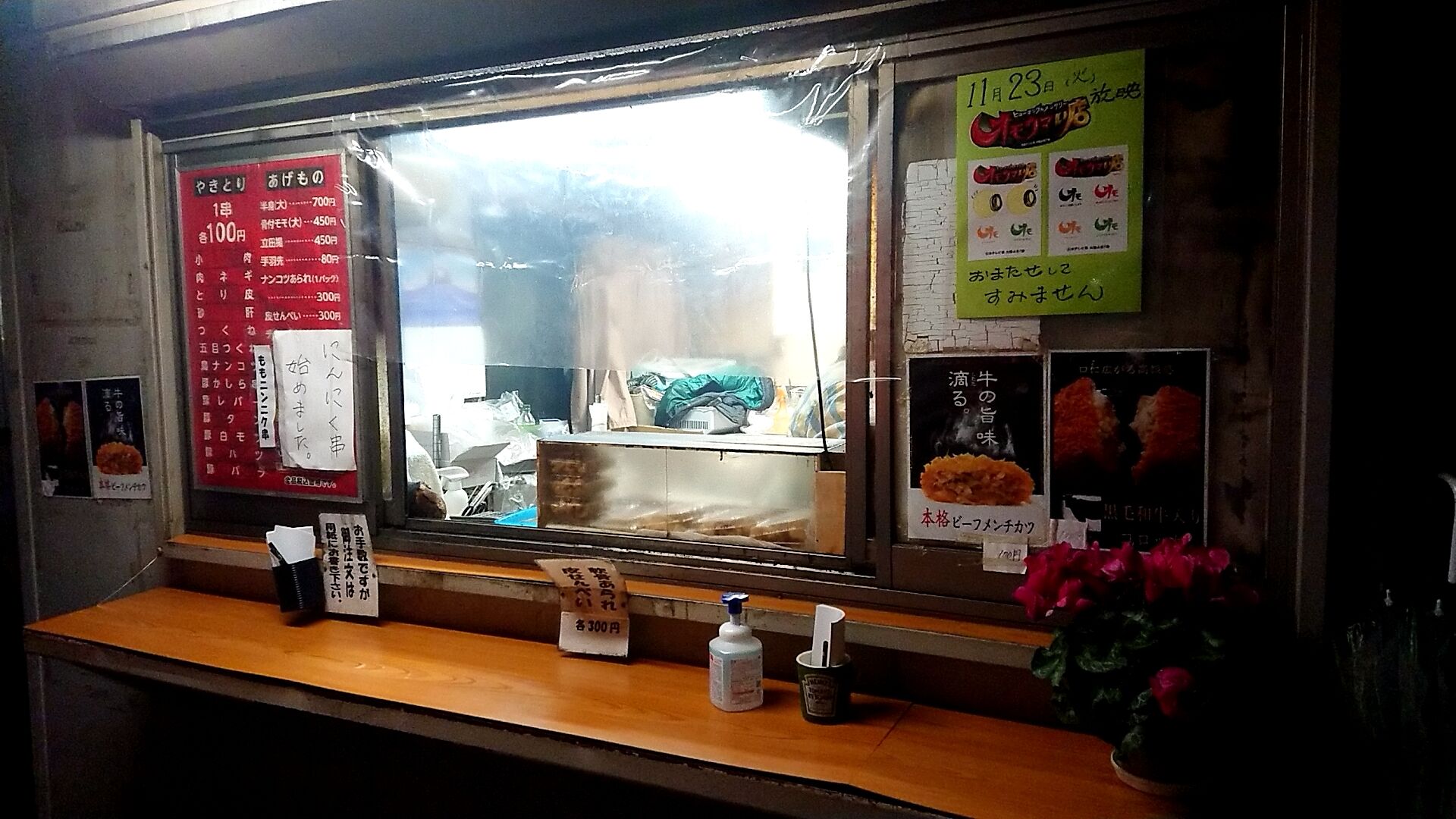 やきとり1串100円、コロッケもメンチカツも100円なので、これだけ買って1100円