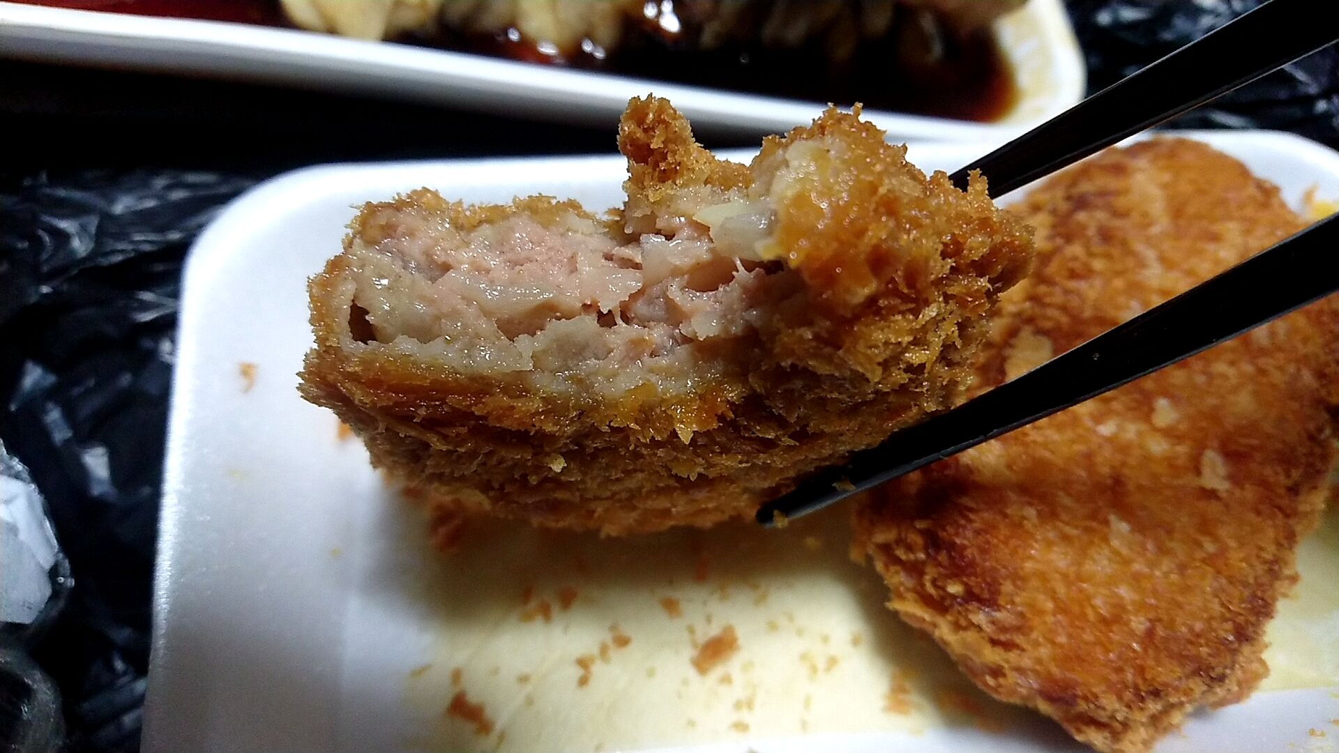 そして前回はオーダーし損ねた本格ビーフメンチカツとコロッケも行くぜ!と