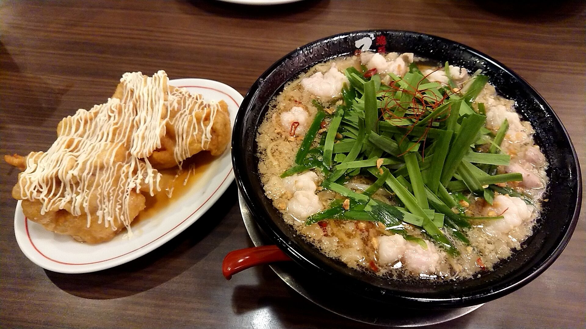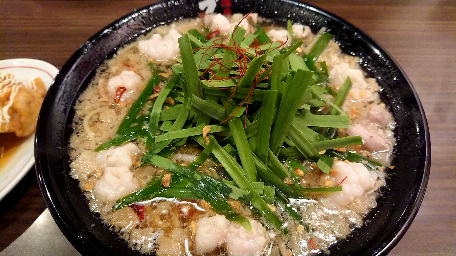 来ました!もつニラそば!!