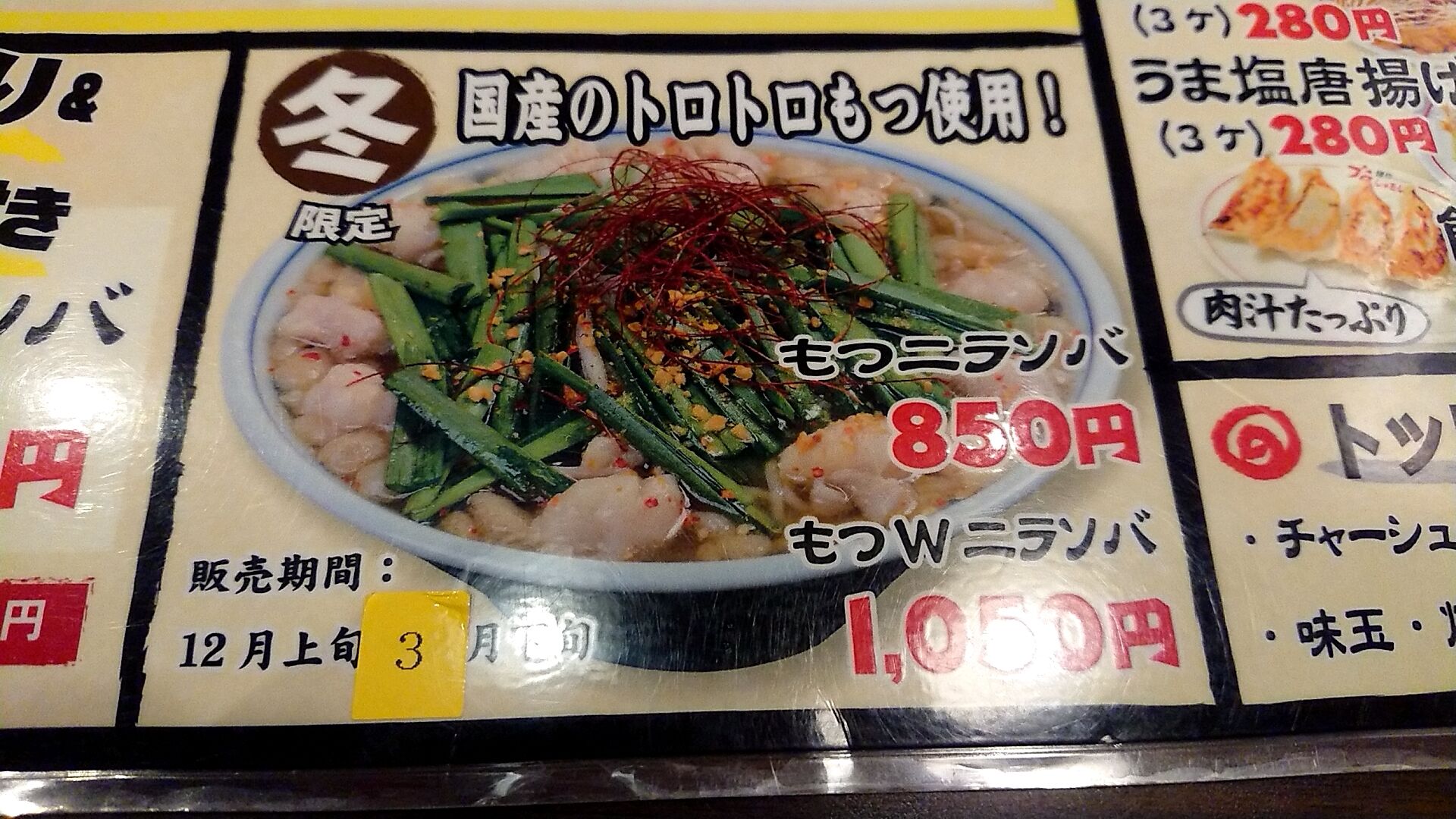 この冬季限定の もつニラそばで行こう!!