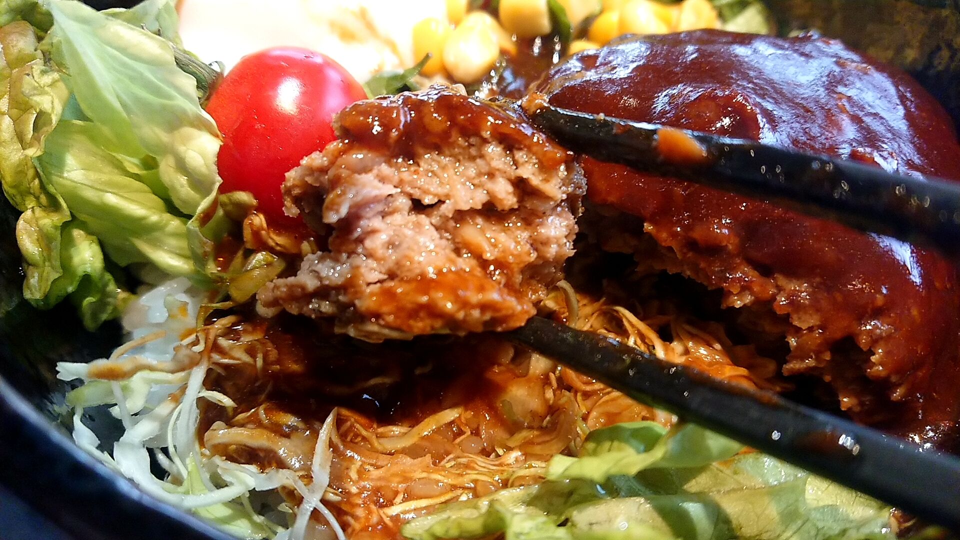 デミグラスソースがたっぷりかかってますね。