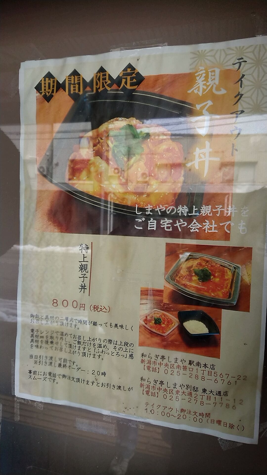 しまやの親子丼なら是非ともテイクアウトもしてみたいなぁ