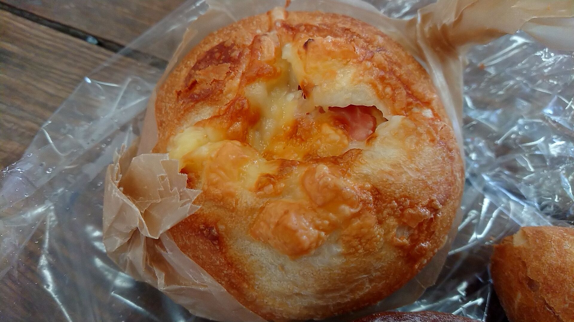 中にはクリームチーズと生ハムが入って、表面もチーズ!!