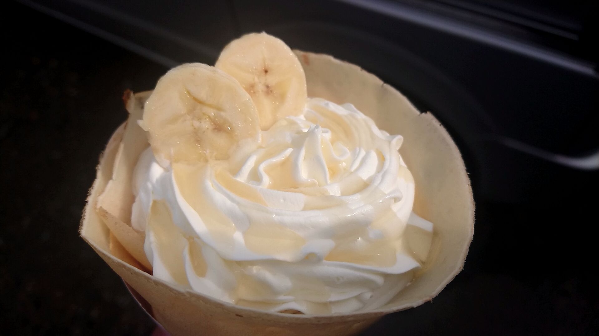 生クリームにバナナといえばオーソドックスなのはチョコですが、はちみつとの組み合わせが気になってオーダー!!!