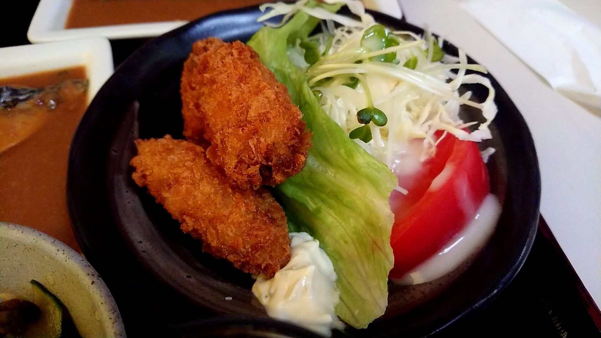 カキフライも揚げたての良い香り。