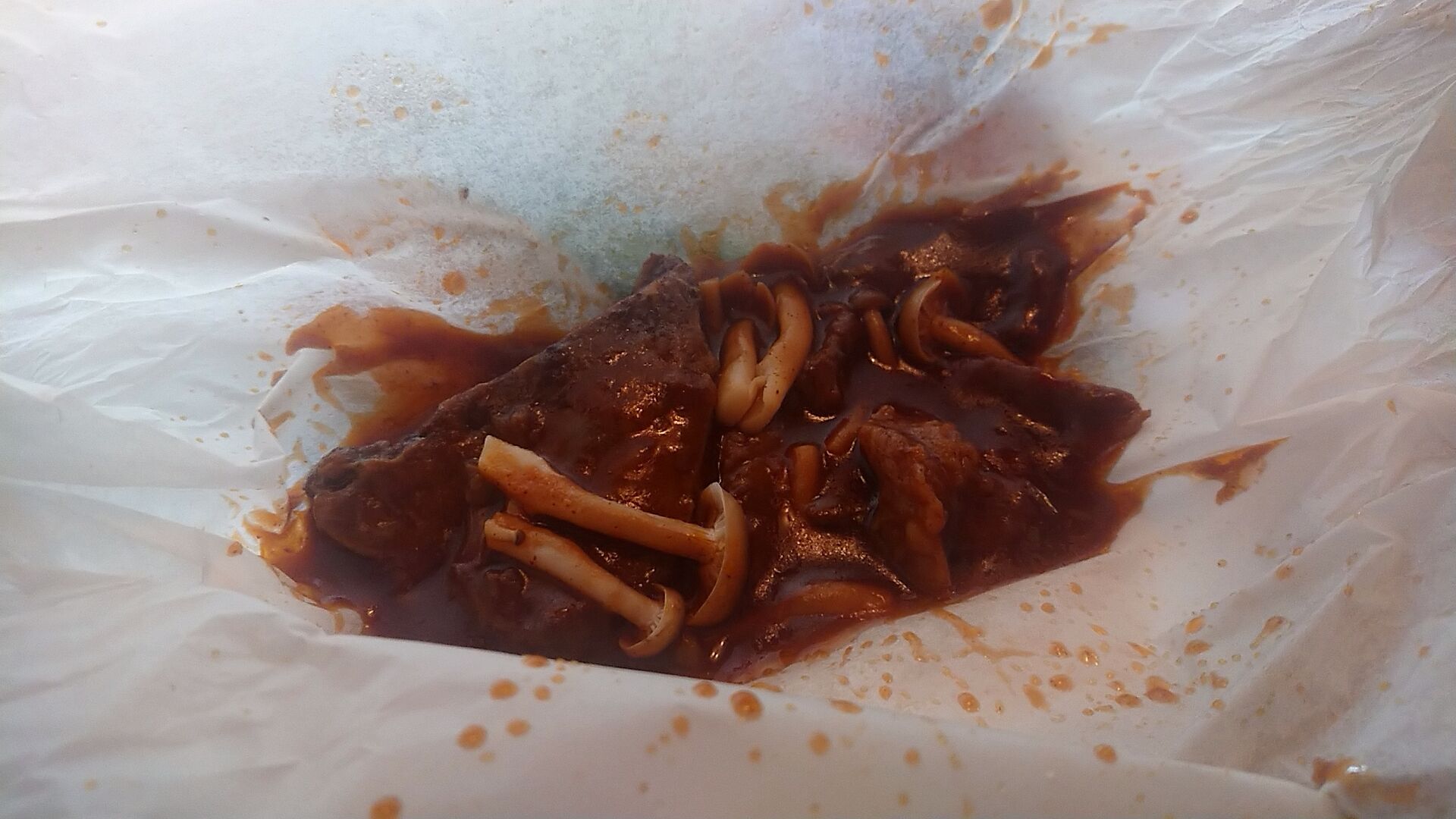 おお・・・ビーフシチューがパラフィン紙で包まれてる。