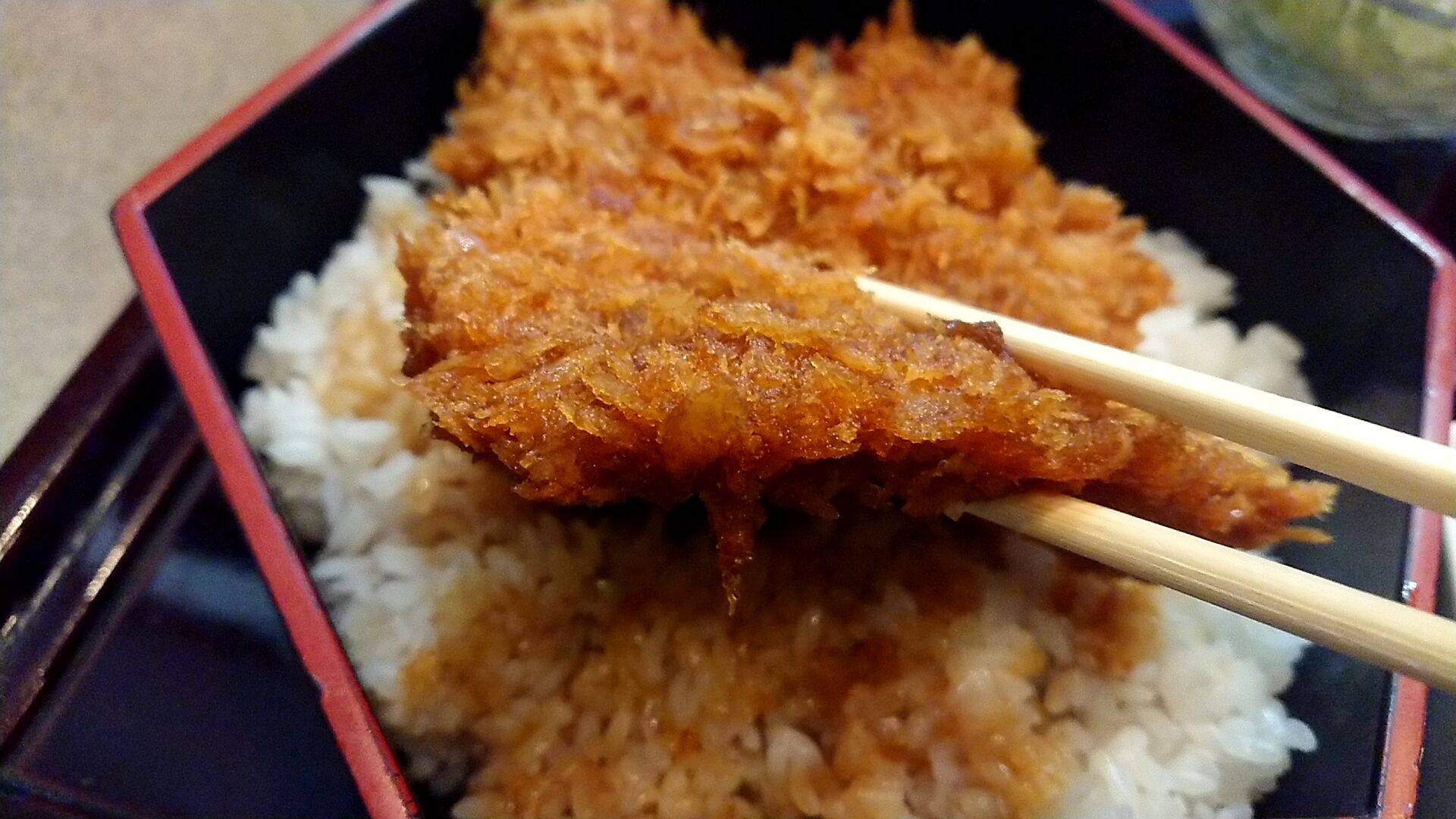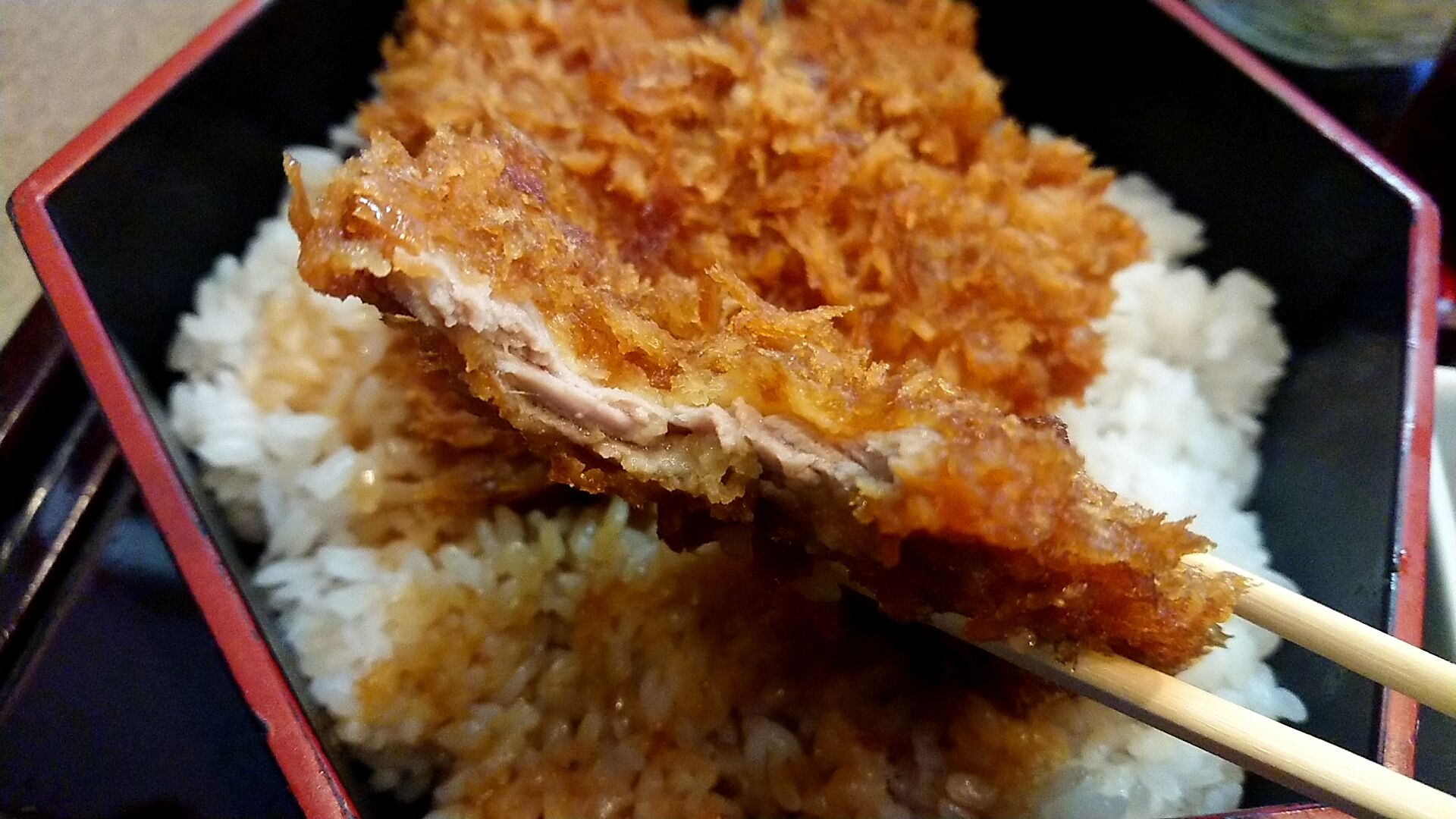 そしてこの新潟ご当地グルメのタレかつ丼特有の甘辛タレがまたご飯に絡むと