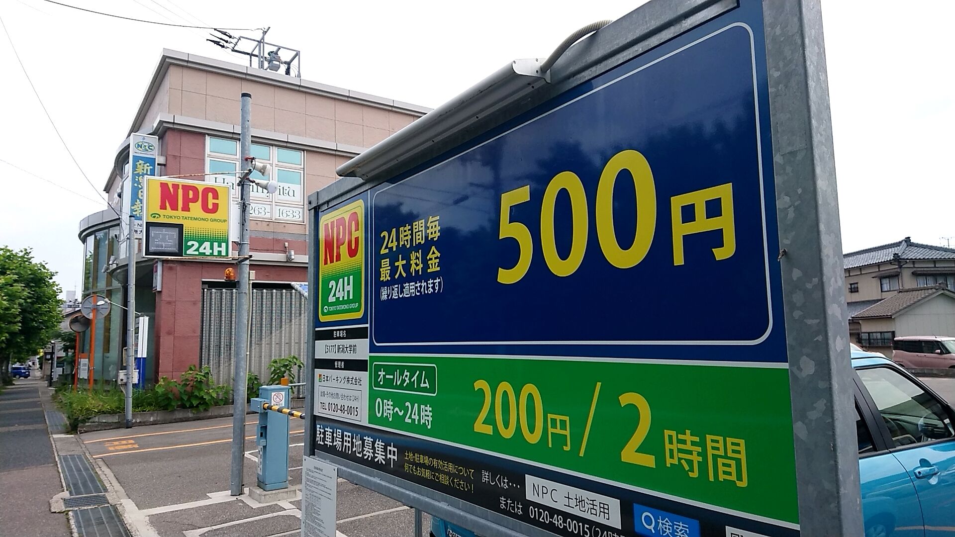 駐車場は店を出て右方向に歩いて4,5分歩く提携駐車場の NPCでした。