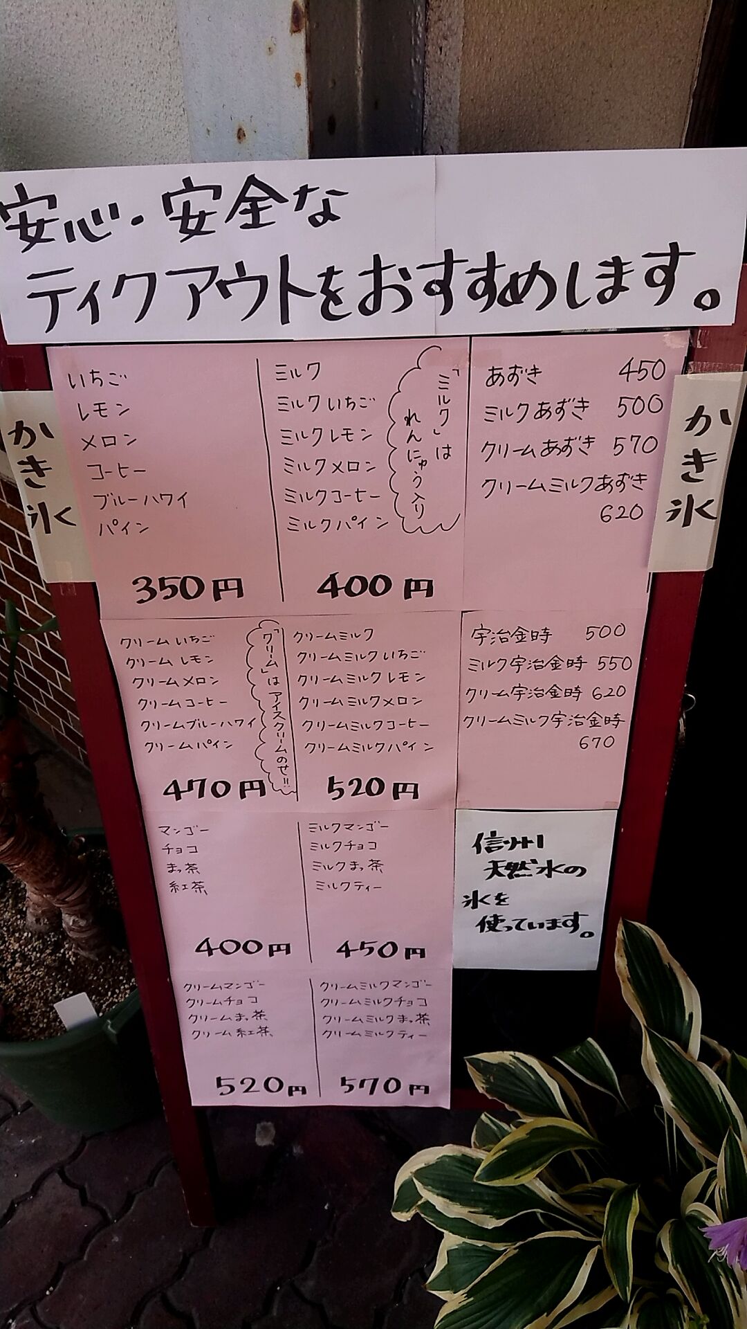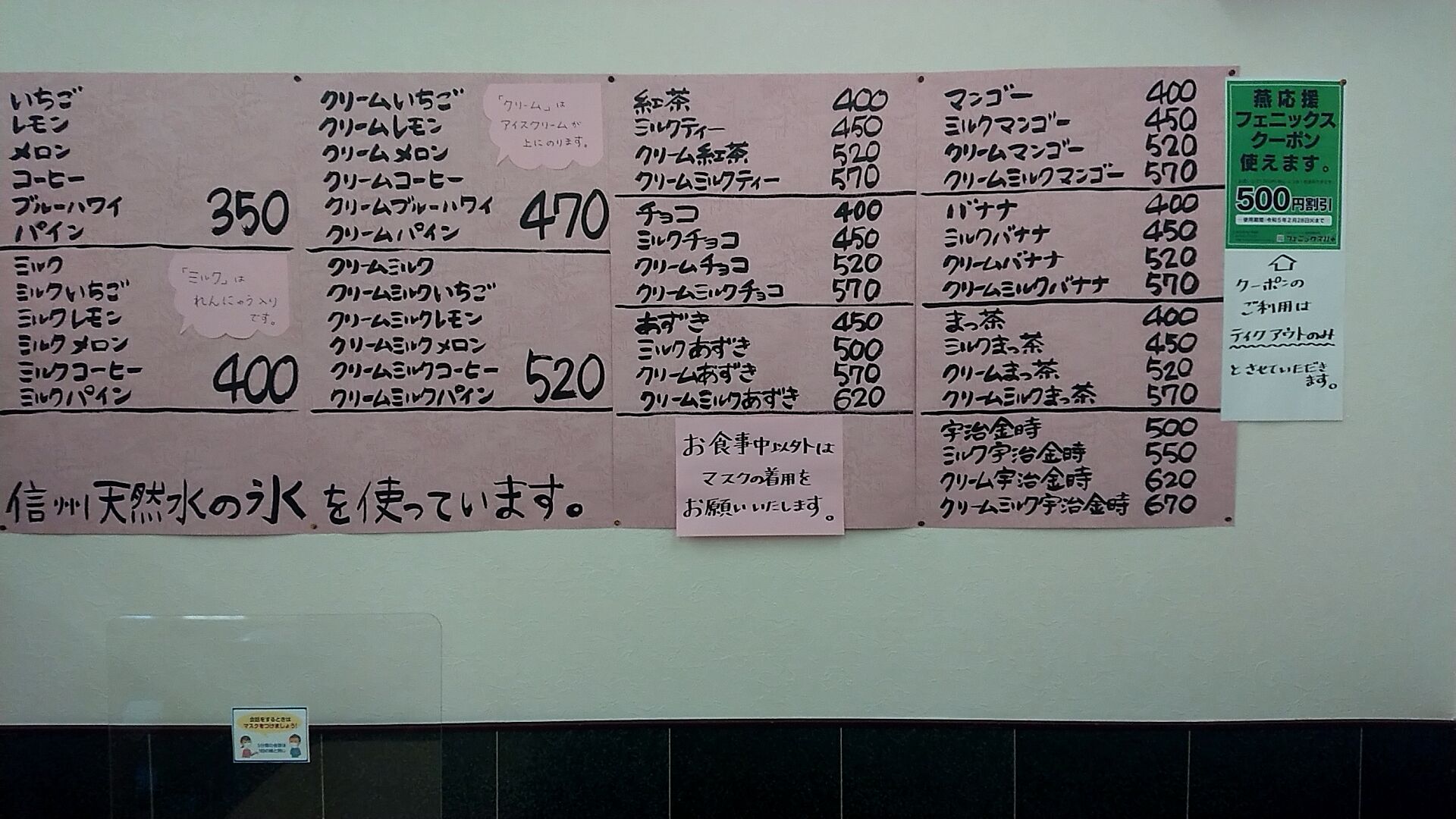 かき氷メニュー。