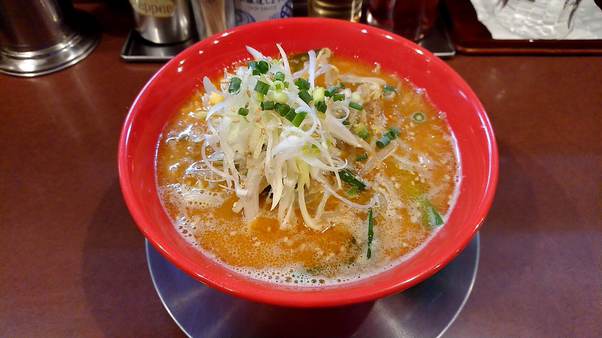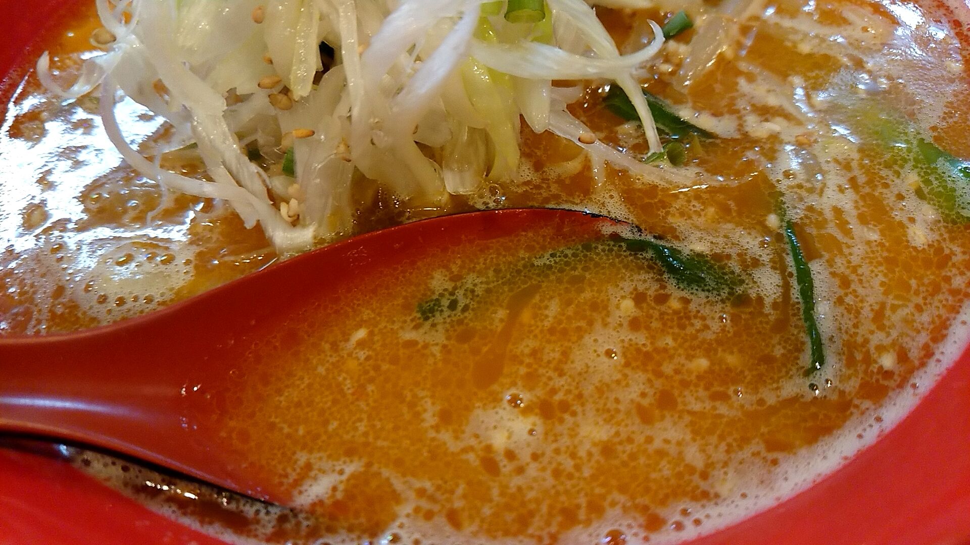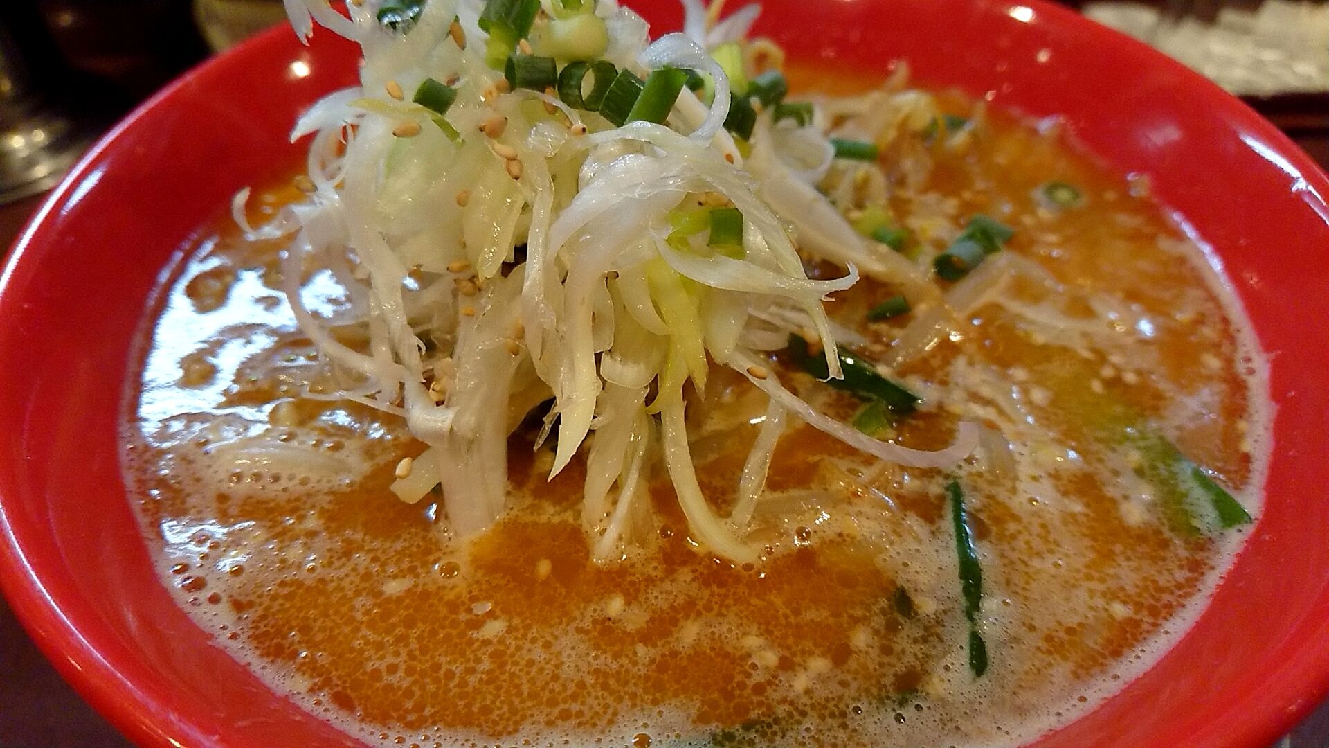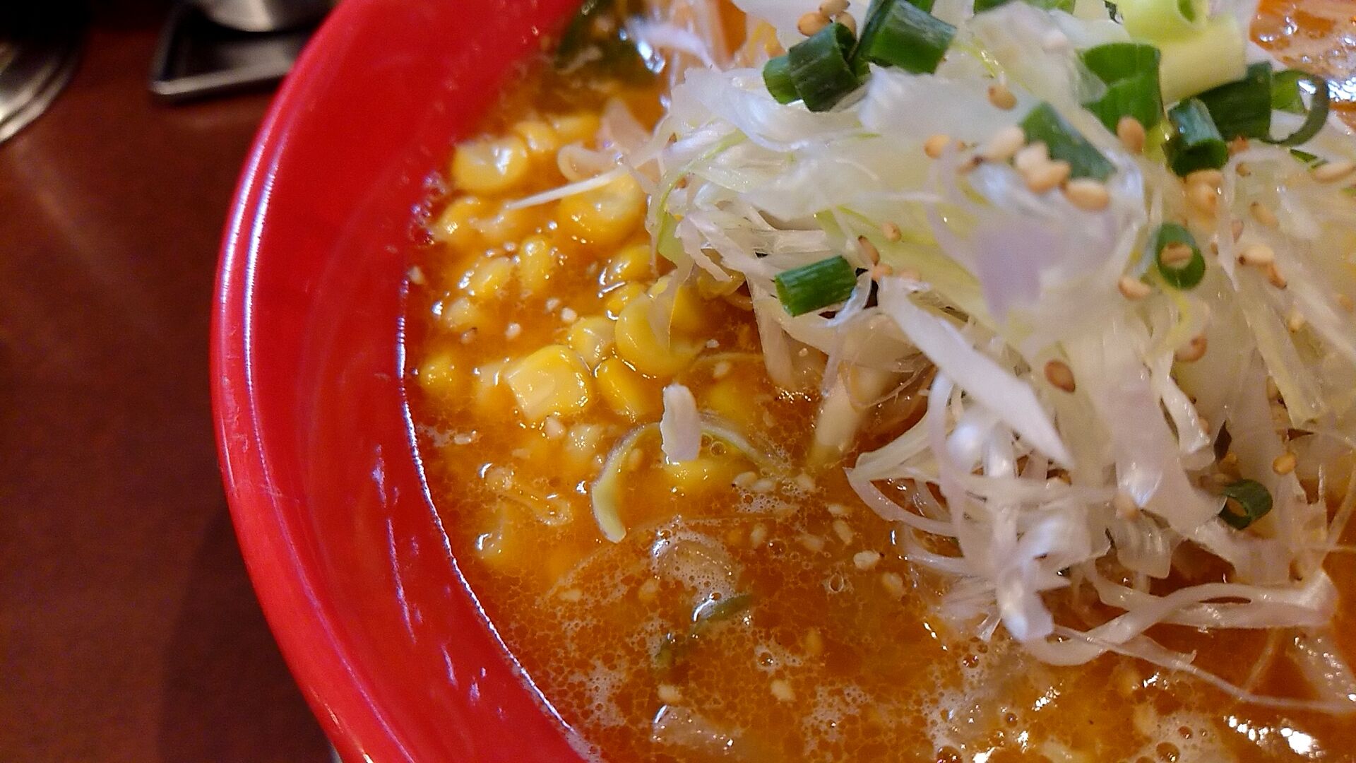 ゴマも浮いて、コーンも入って、濃いコクのある味噌の風味に挽き肉や野菜の旨味。