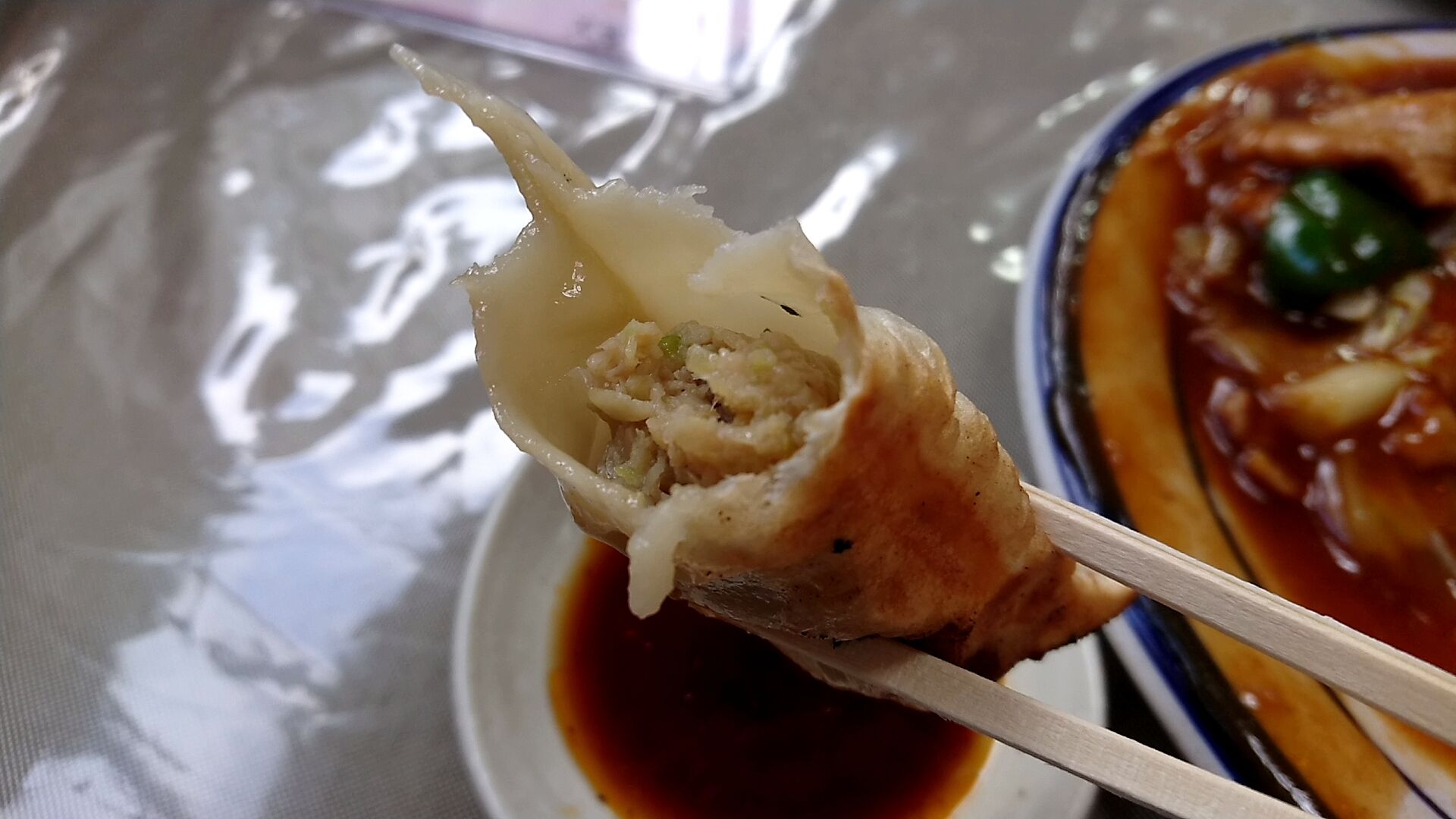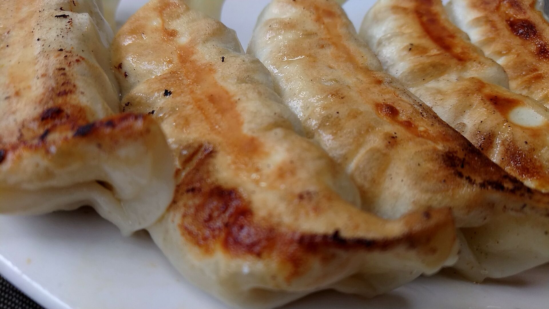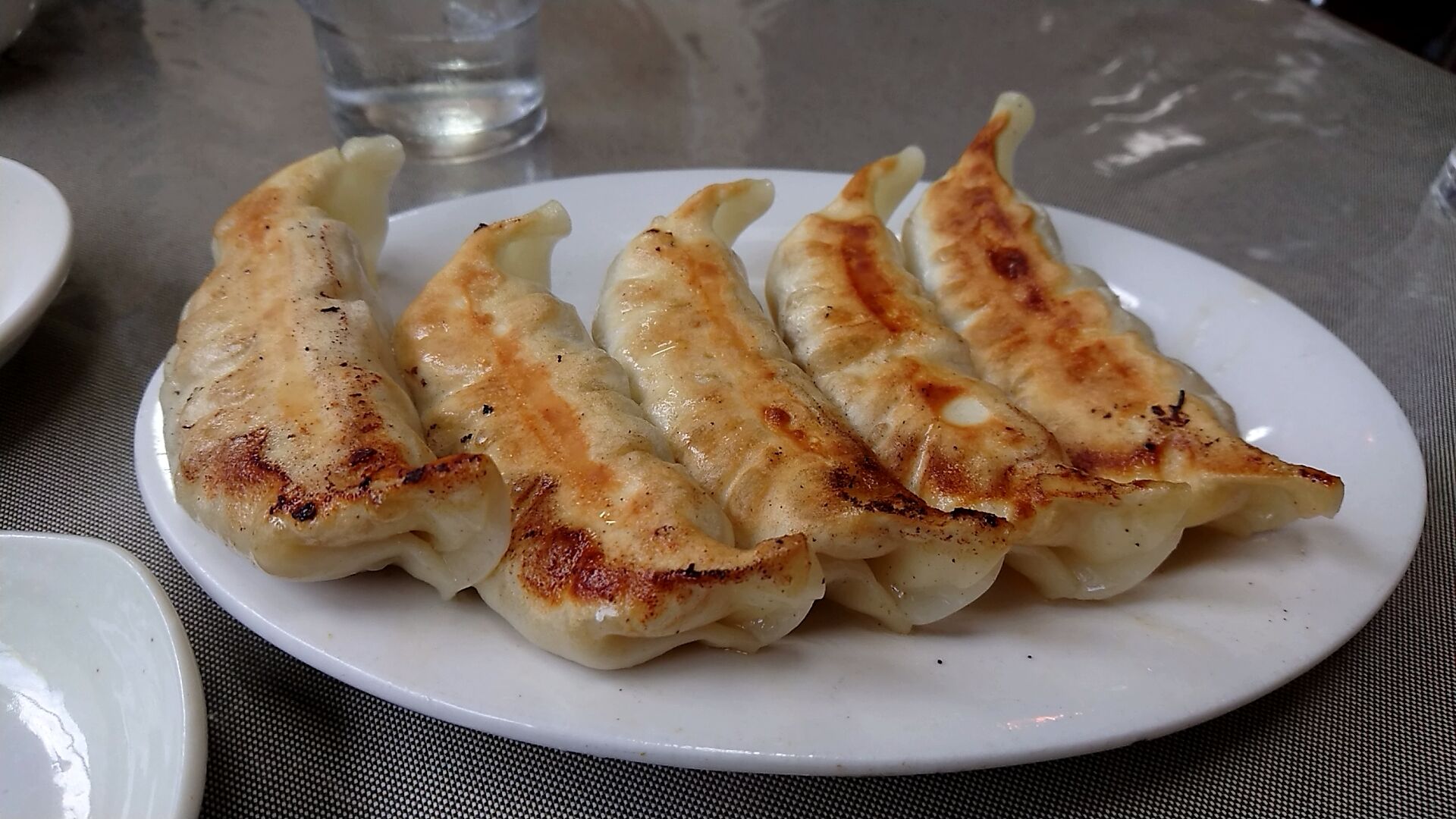 餃子もいただきますよ〜、この焼き色がたまらん。
