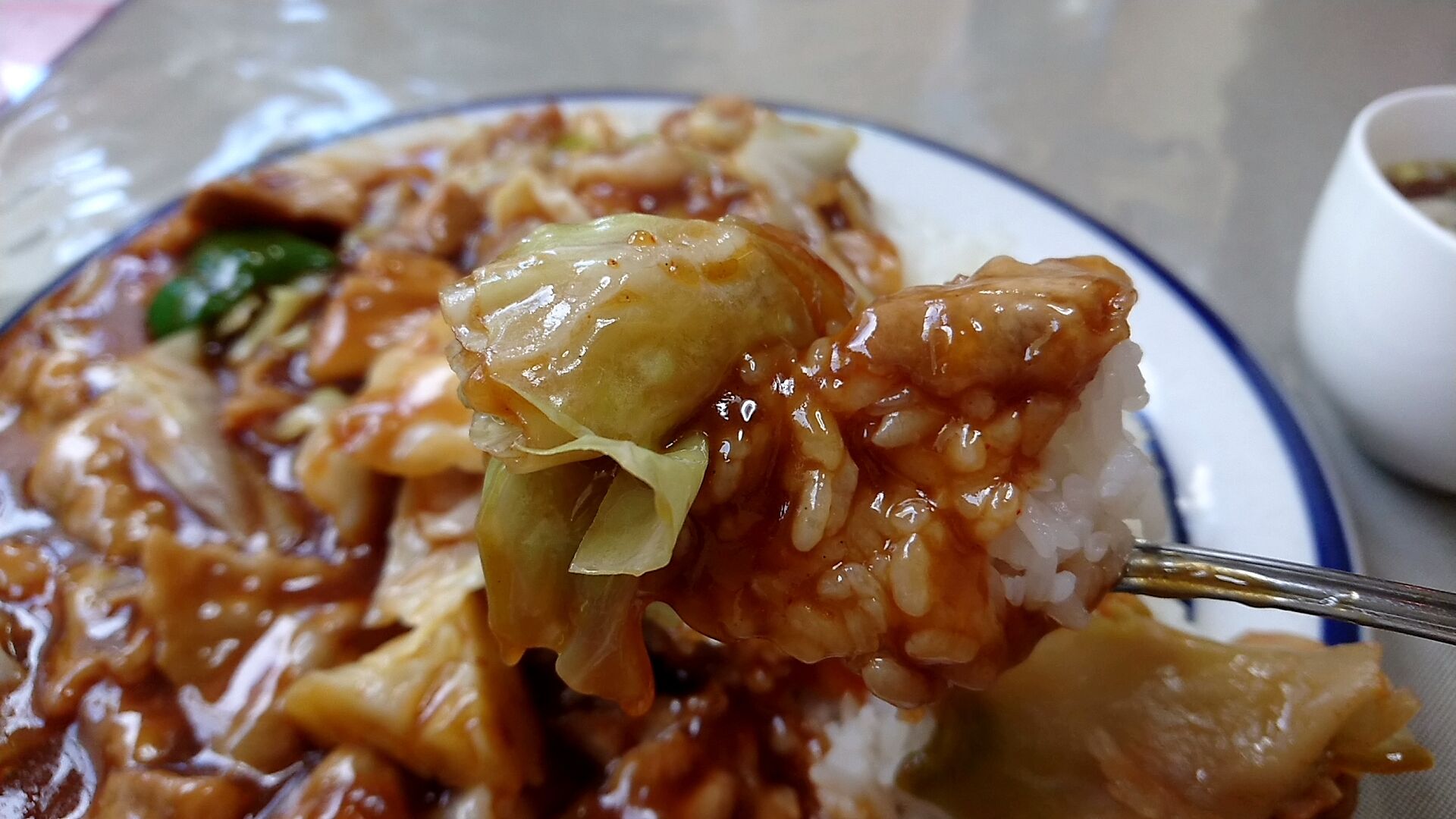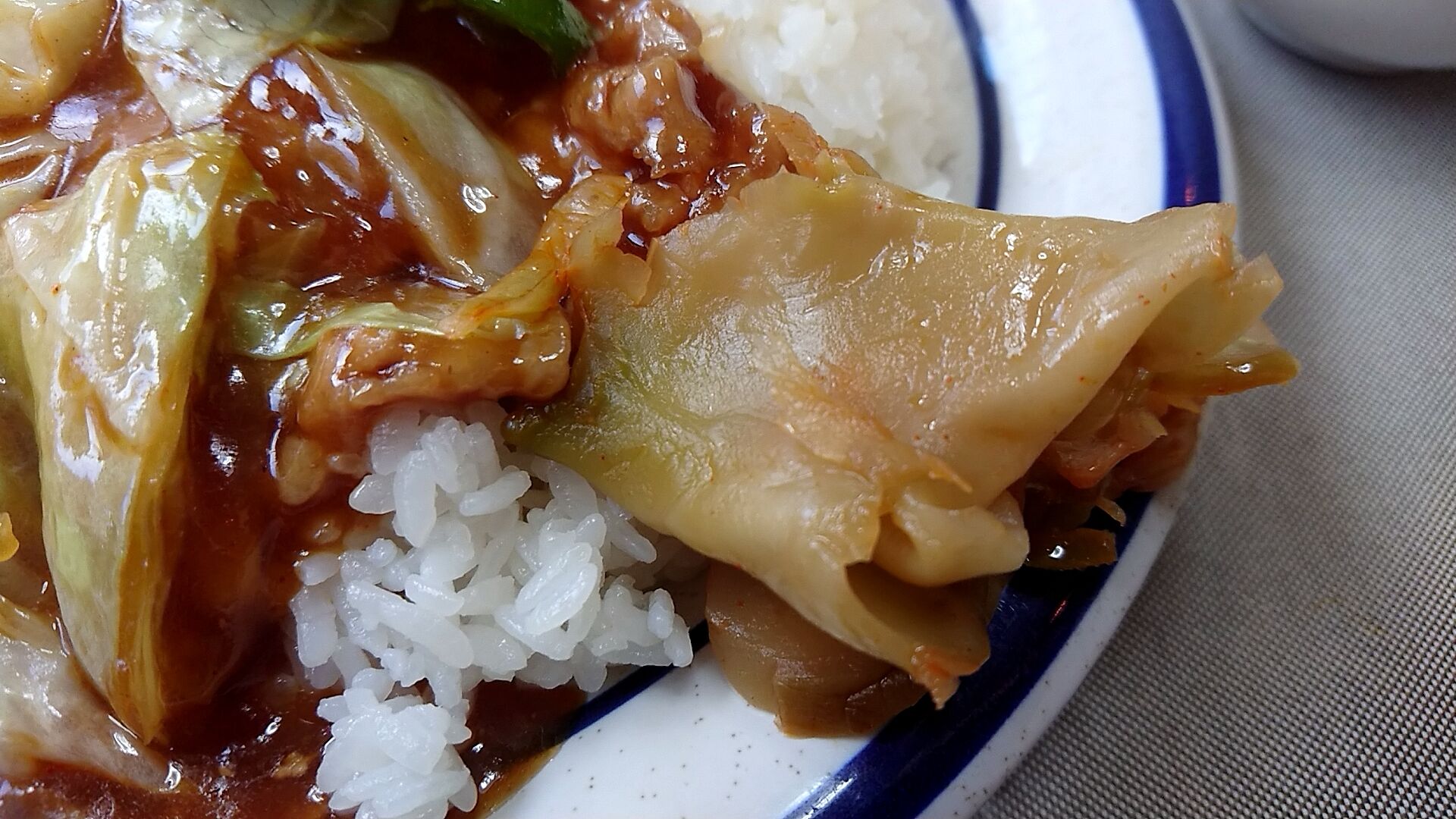回鍋肉は、このちょっとしんなり熱の入ったキャベツがまたそそるわー。