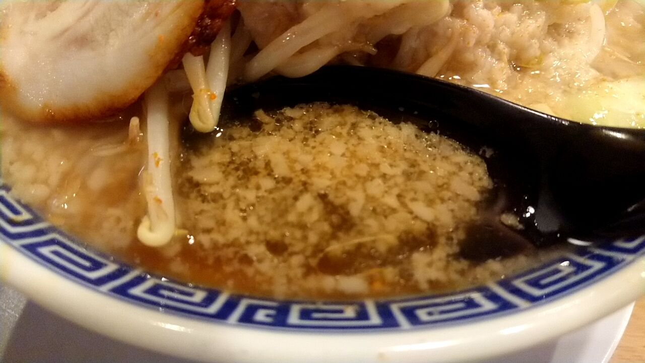 スープもガッツリ背脂が浮いてる。