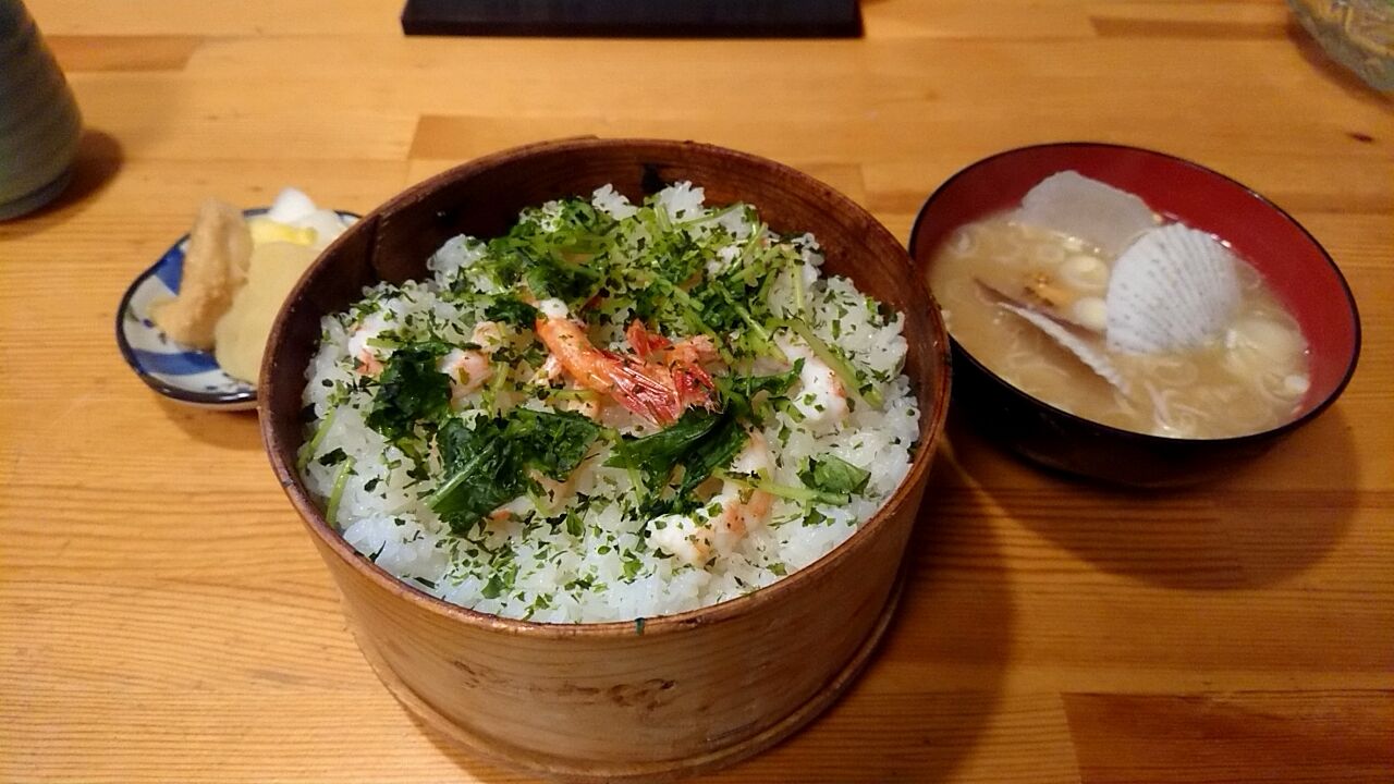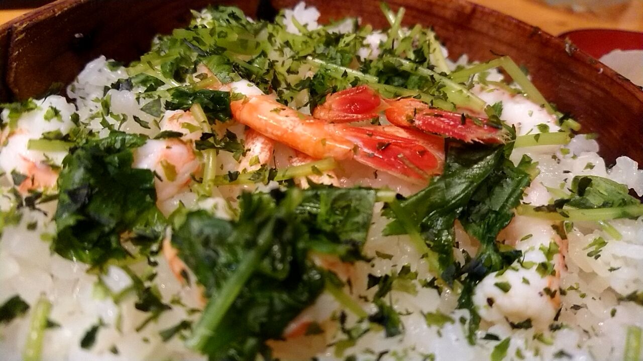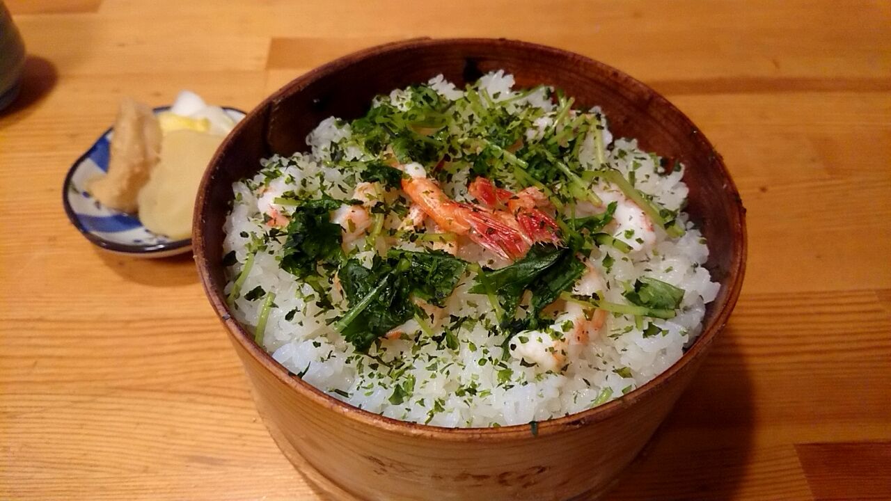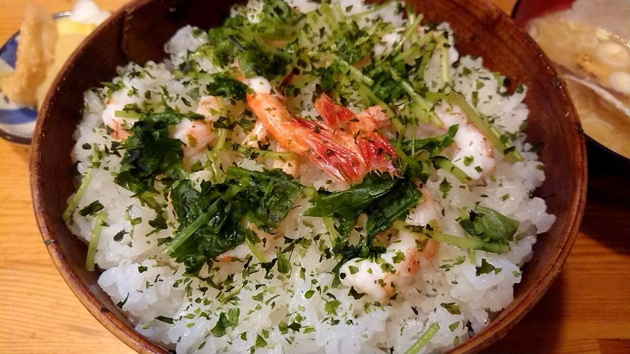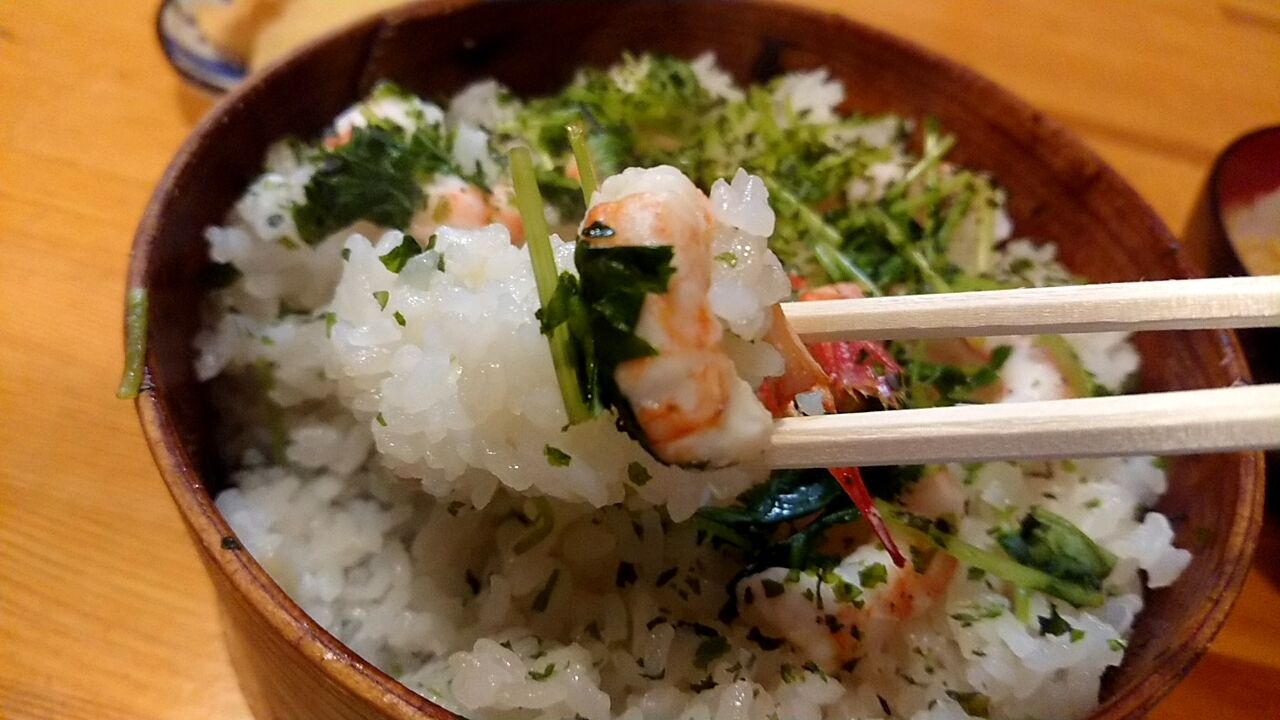 ふんわり感のある米の食感、ほどよい塩気にえびが旨い。