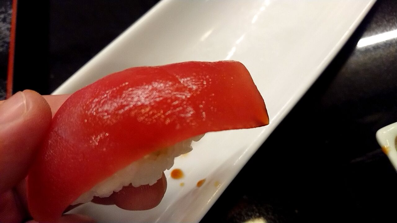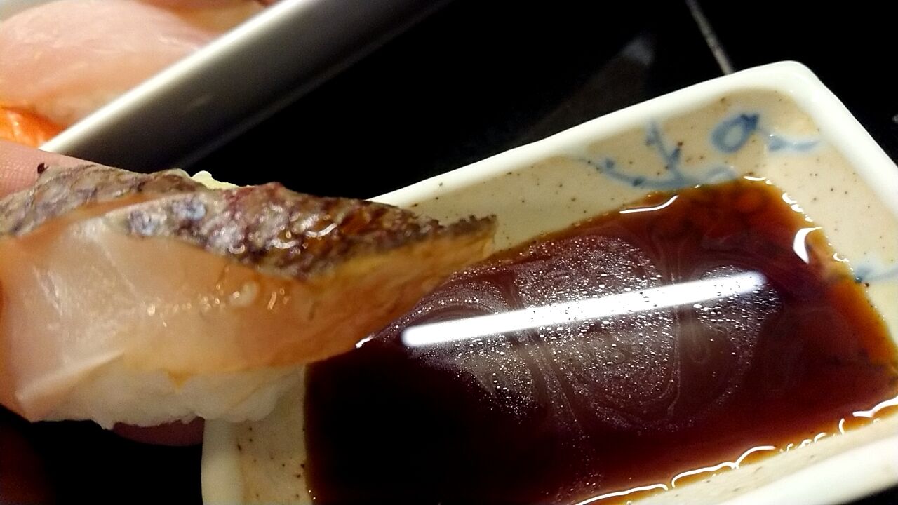 身を醤油に浸けるとフワっと醤油の表面に脂が。