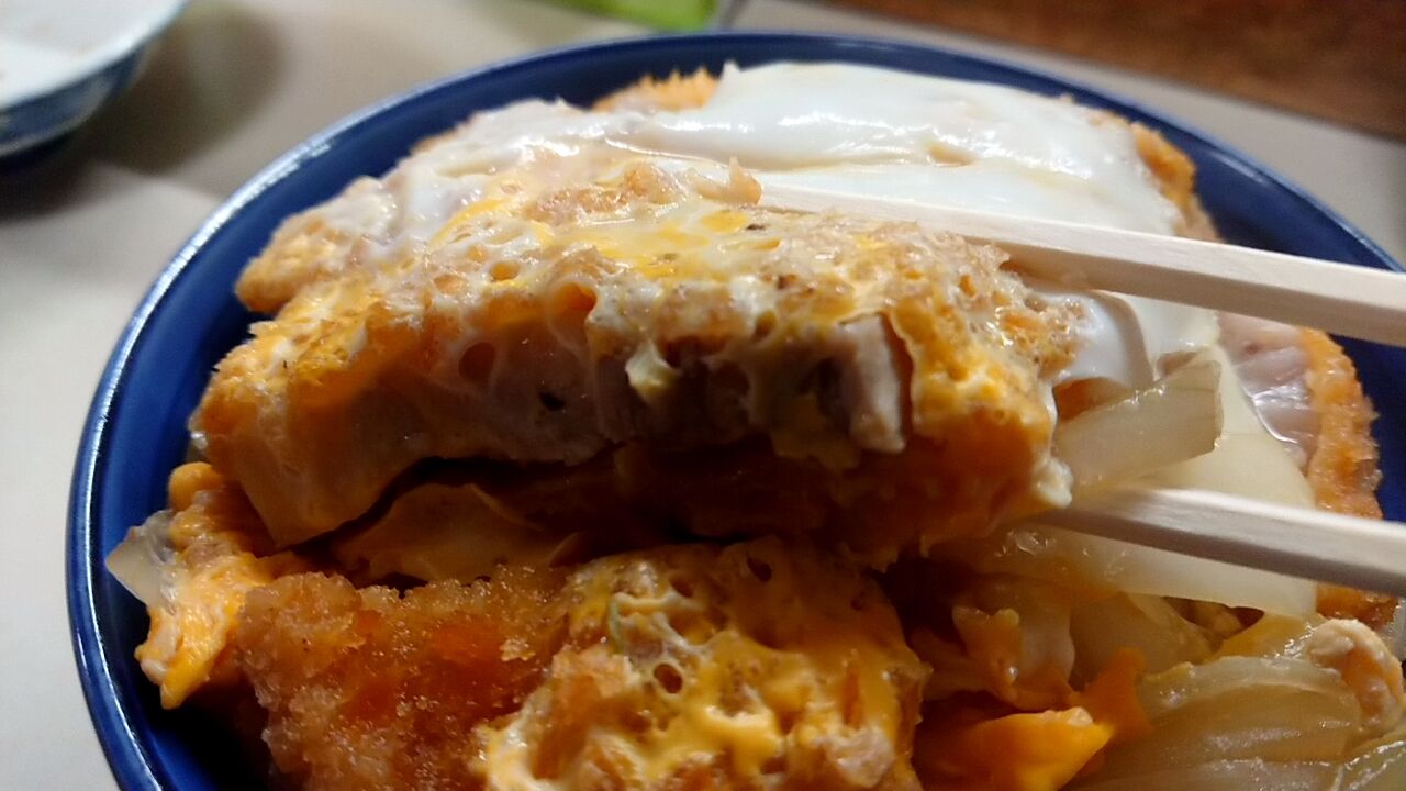 蓋が軽く浮いてるカツ丼の器が良い。