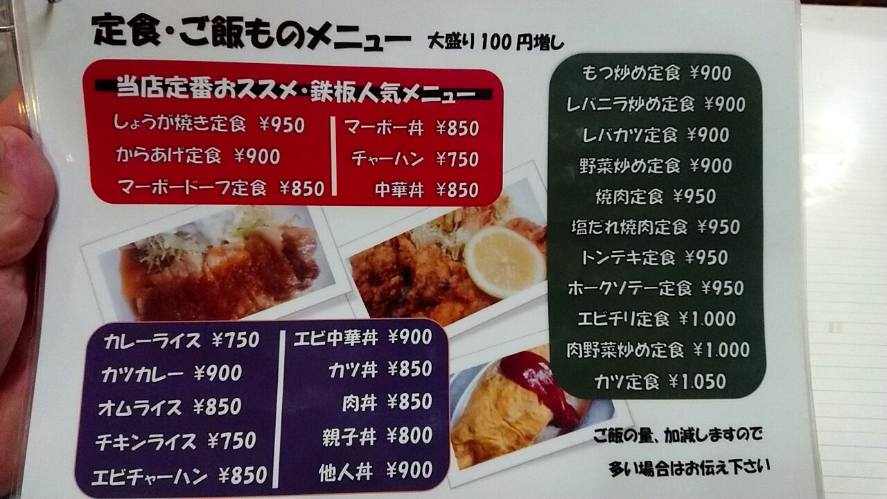 定番人気メニューにしょうが焼き定食が一番最初に載ってる。