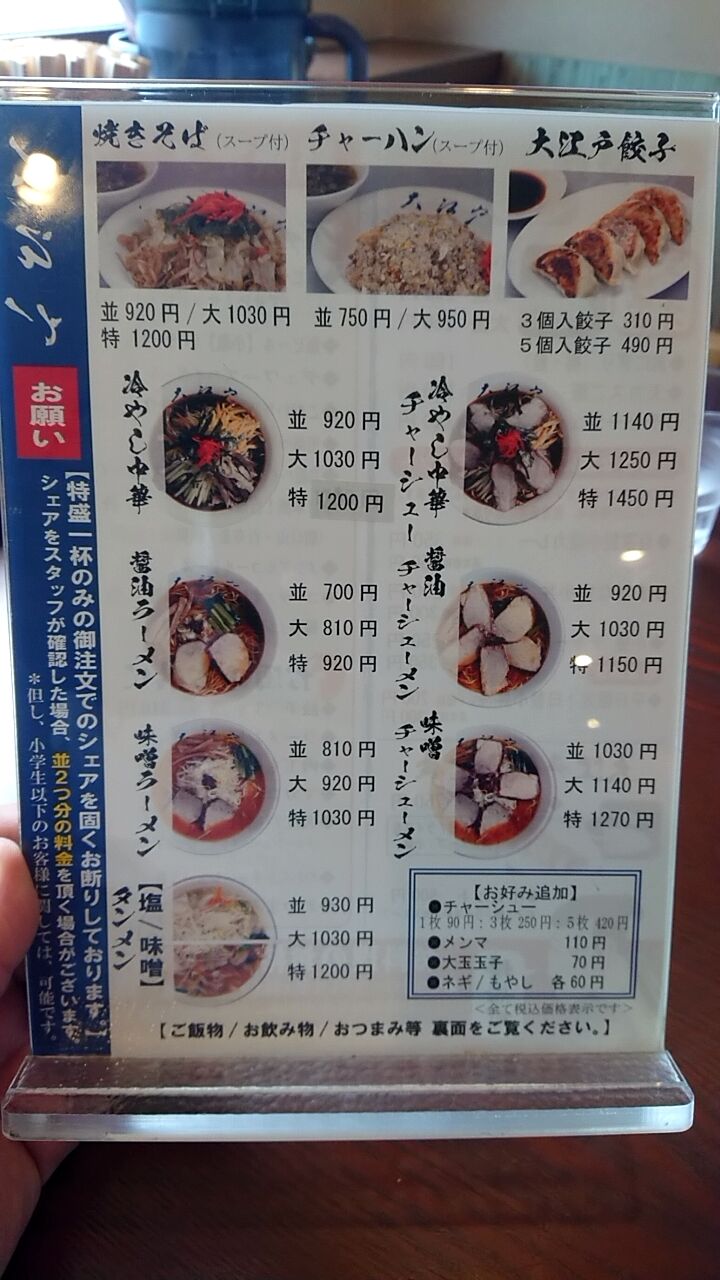 メニューはこちら、ラーメンやチャーハンも旨いけど