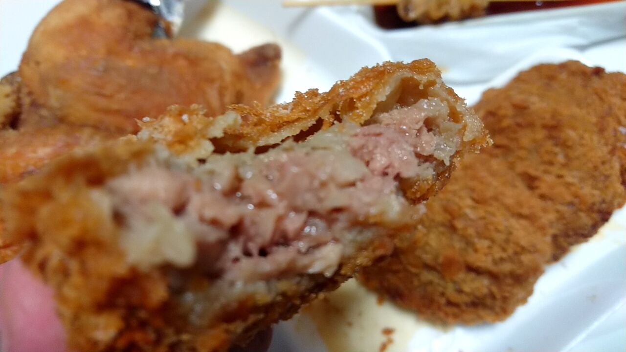 ほしのさんのメンチカツ噛むとジュワっと肉汁が溢れる。