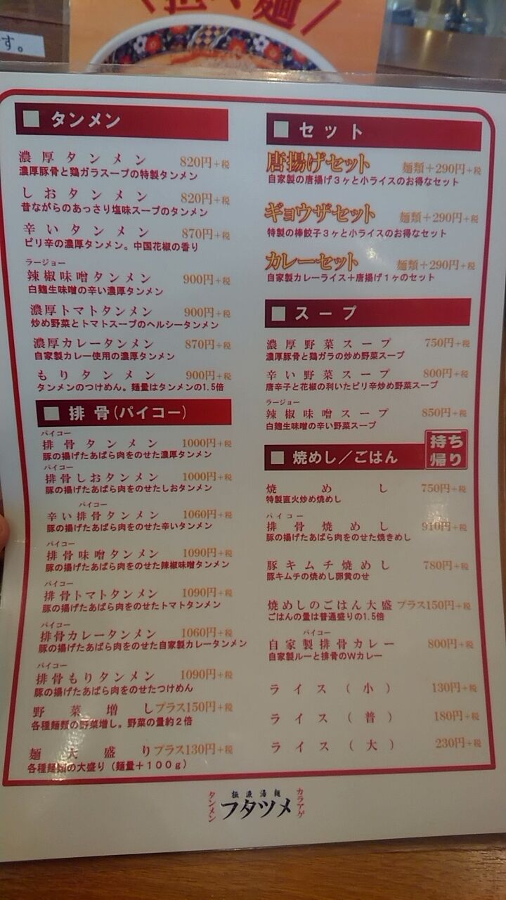 メニューはこちらですが、今回はやはり濃厚タンメン!!