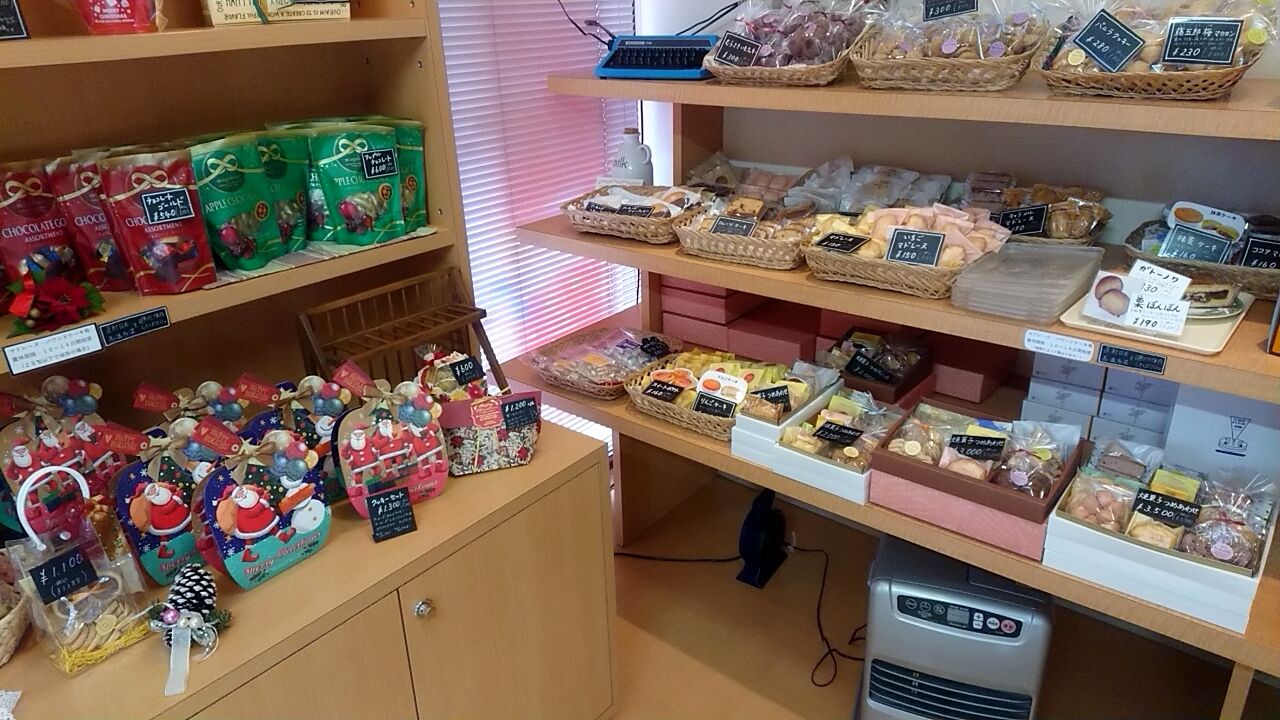 ここケーキハウス ヨシダさんも棚には予約のホールケーキの箱が一杯。