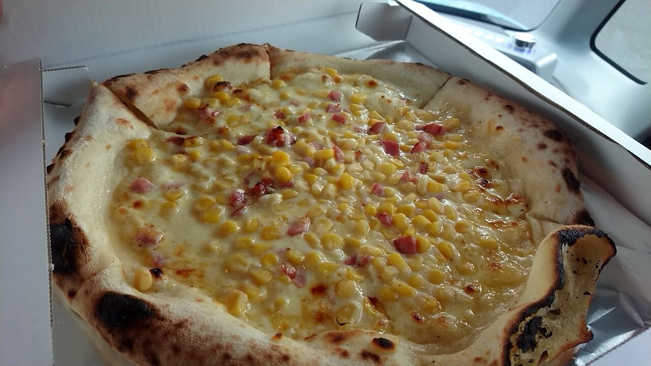まぁここでピザ買うと焼き立ては絶対に味わいたくて1切れだけ車の中で食べちゃうという。