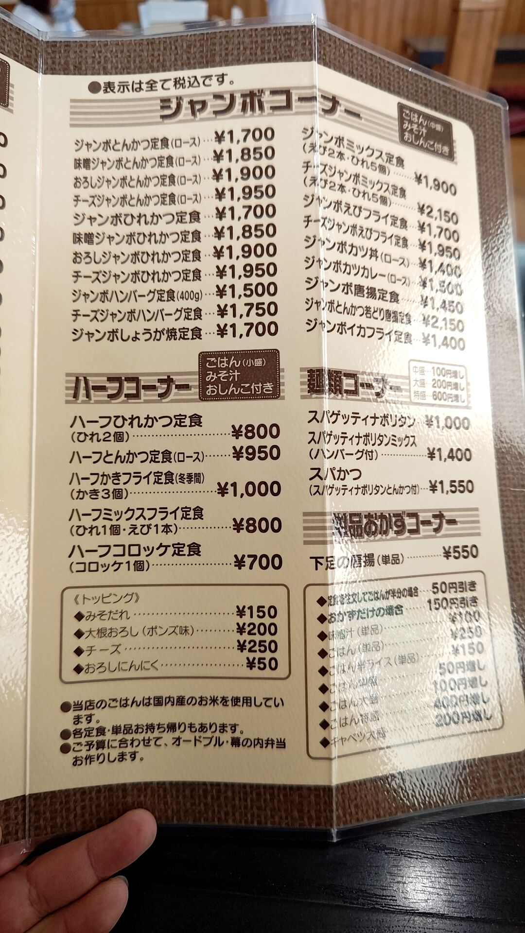 メニューを見ると『ジャンボ』の文字