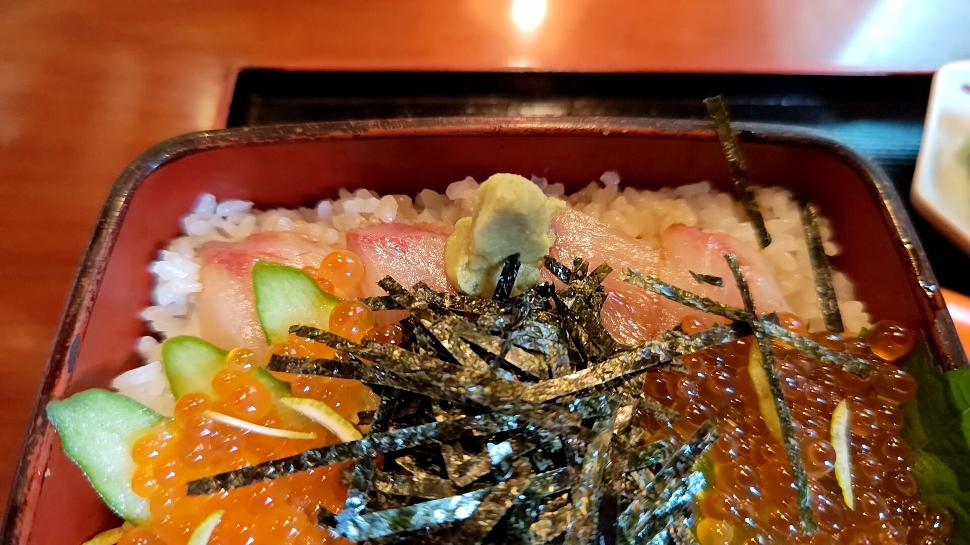 ブリはいくらの陰に隠れるように控えめに。
