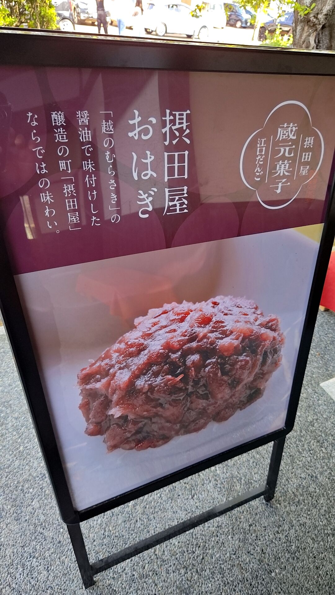 このおはぎ、地元摂田屋の醤油「越のむらさき」が使用されているらしく甘みの中にほんのり醤油の風味。