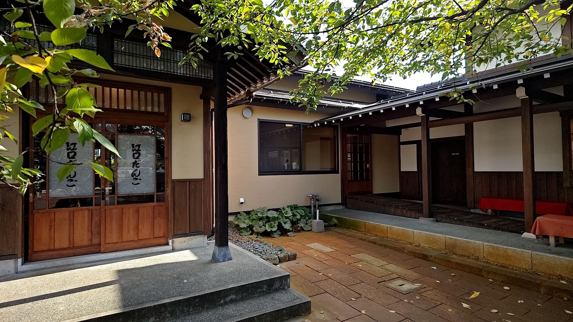 みたらしだんごはオーダーしたら焼いてくれるスタイルなので、暫く座って庭や建物を眺めて待ちます。