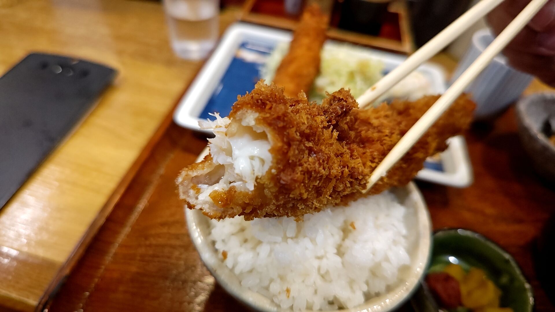 凄い歯ごたえ、普通のエビフライのエビはぷつんって感じなのに。