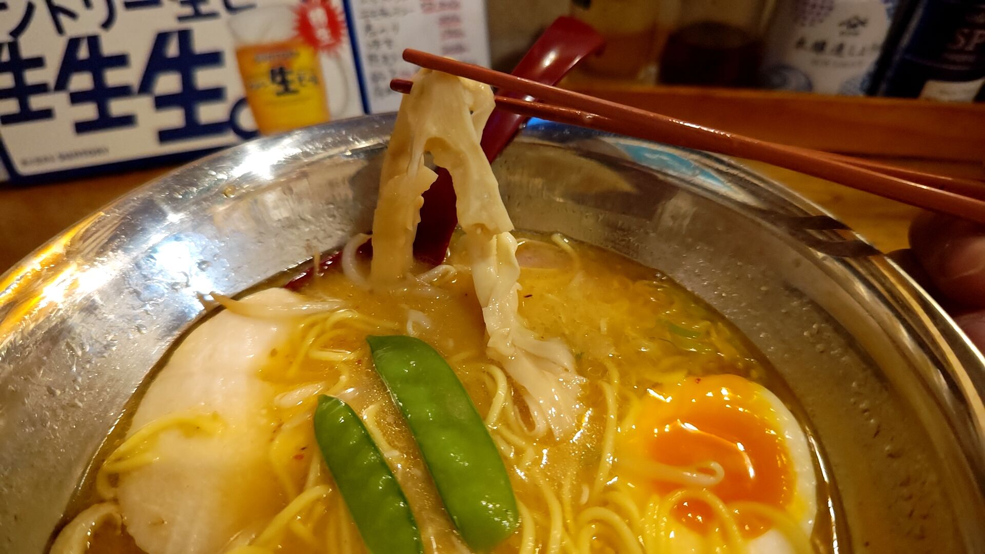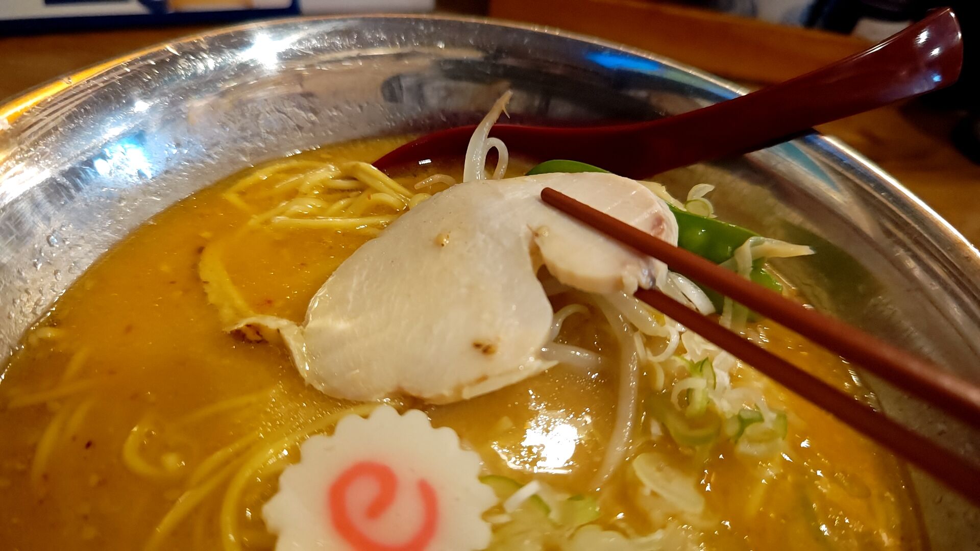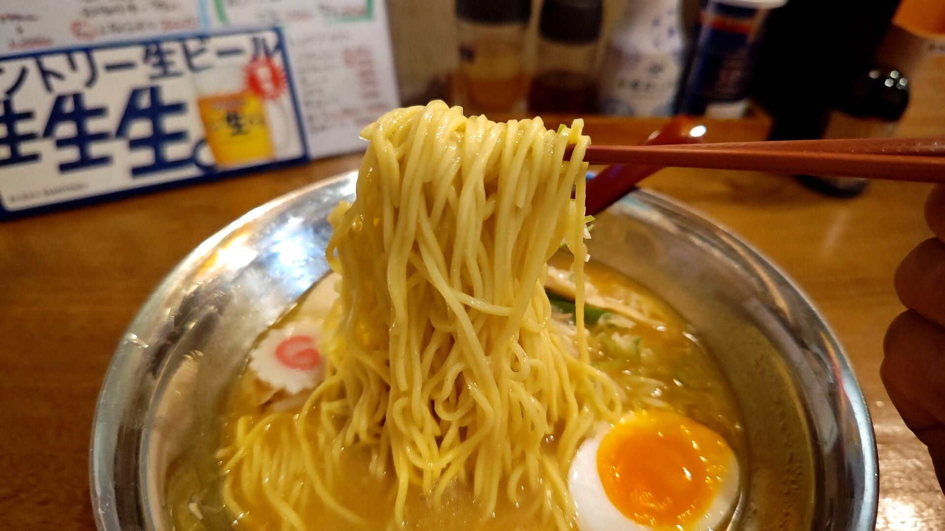 麺をすすり上げると、これまたスープの旨味が絡んで旨い。