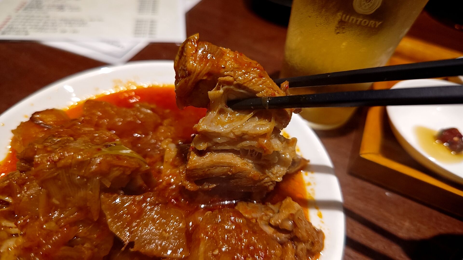 三時間じっくり蒸されたお肉はプルプルに柔らかく、骨からも軽く外れる柔らかさ。