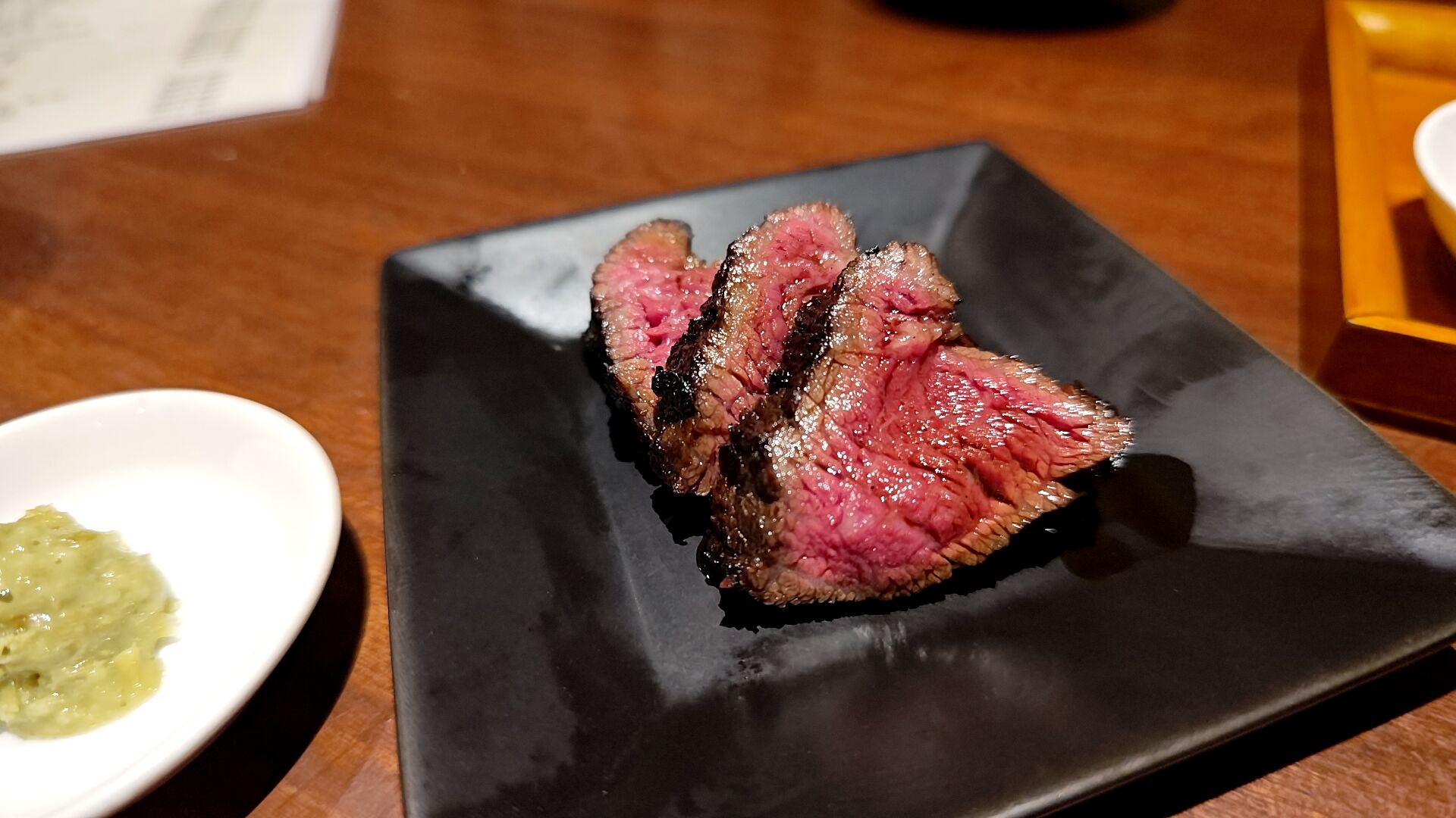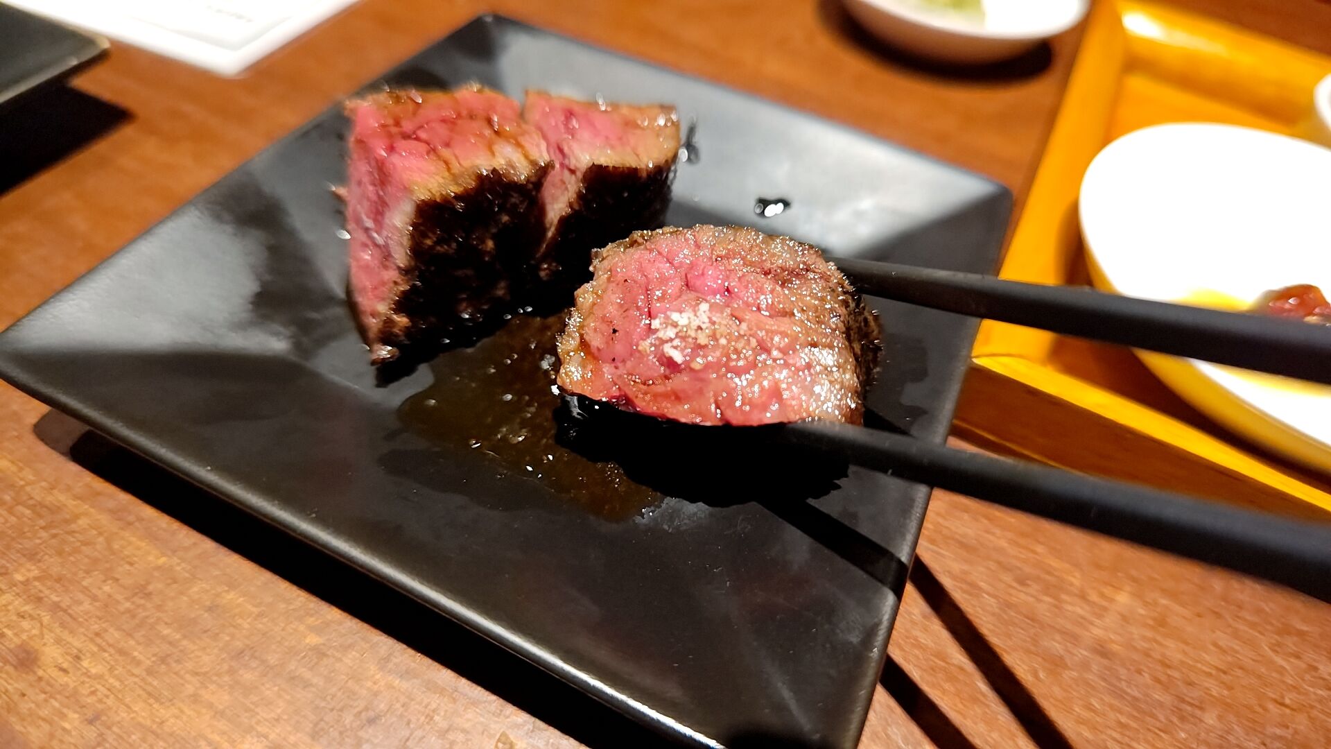 素晴らしい火の通り具合の完璧なレア。