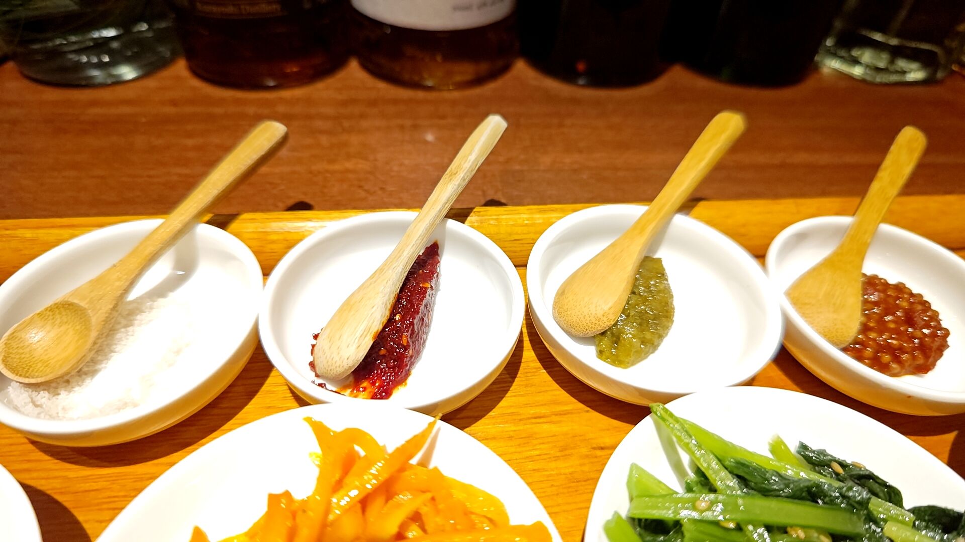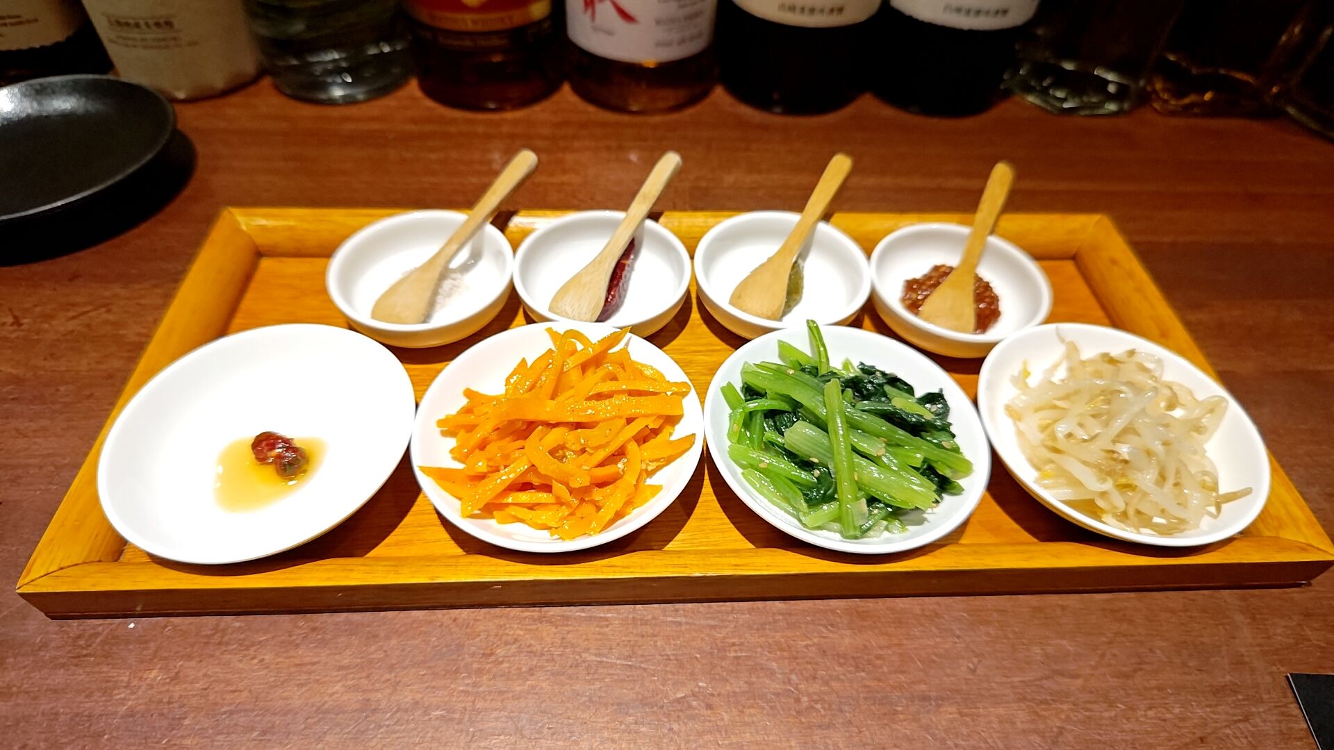 眼の前には既に前菜として肉山さん自家製のナムルと調味料が用意万端。
