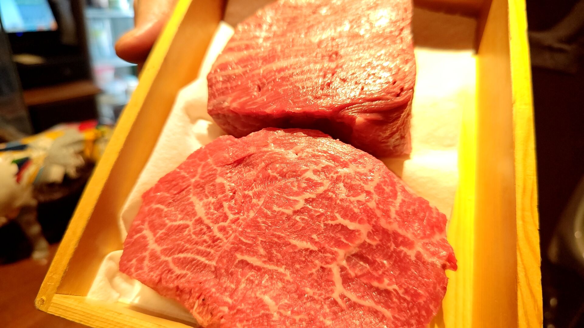 上が「北海道産十勝牛のイチボ」で下が「新潟産蒲原牛のシンシン」