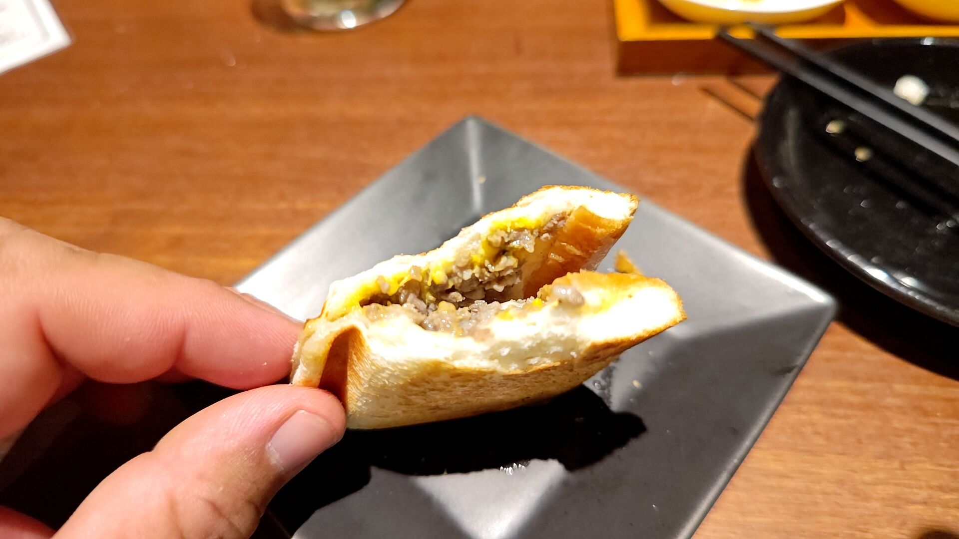 肉山オリジナルの挽き肉とチーズとマスタードのホットサンドはまろやかなチーズでマスタードが優しい味わいとなり美味かったです。
