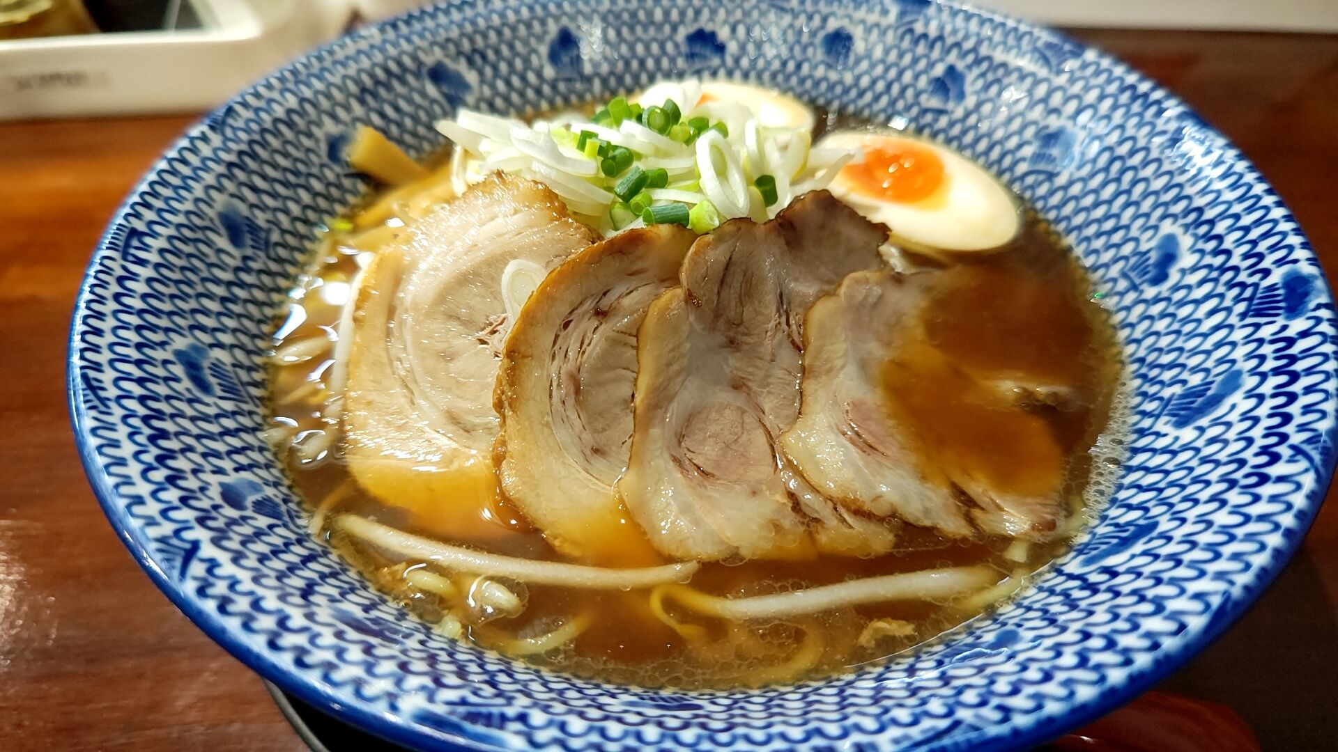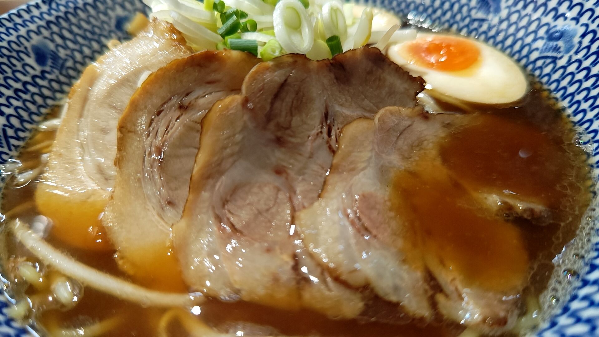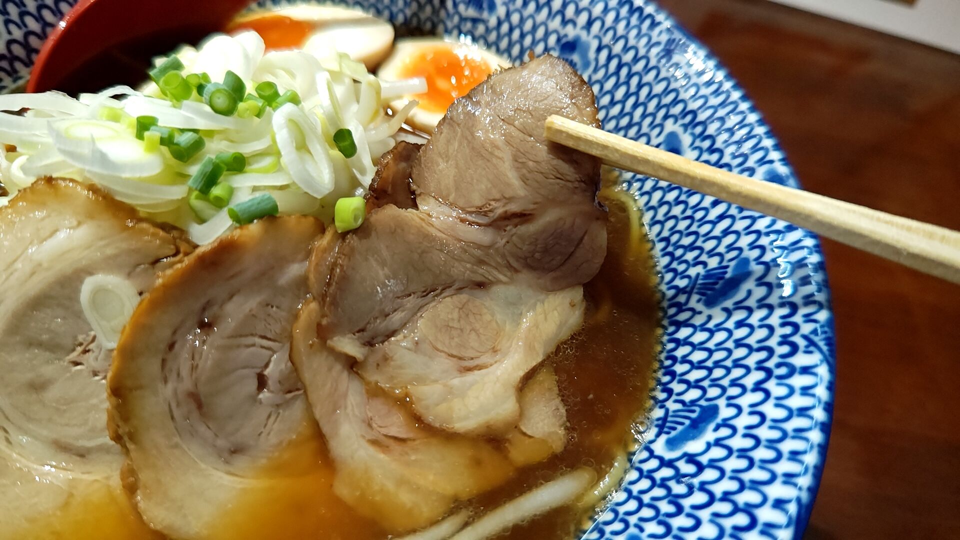チャーシューは肉と脂身のバランスの良い部位で、柔らかく美味しい。