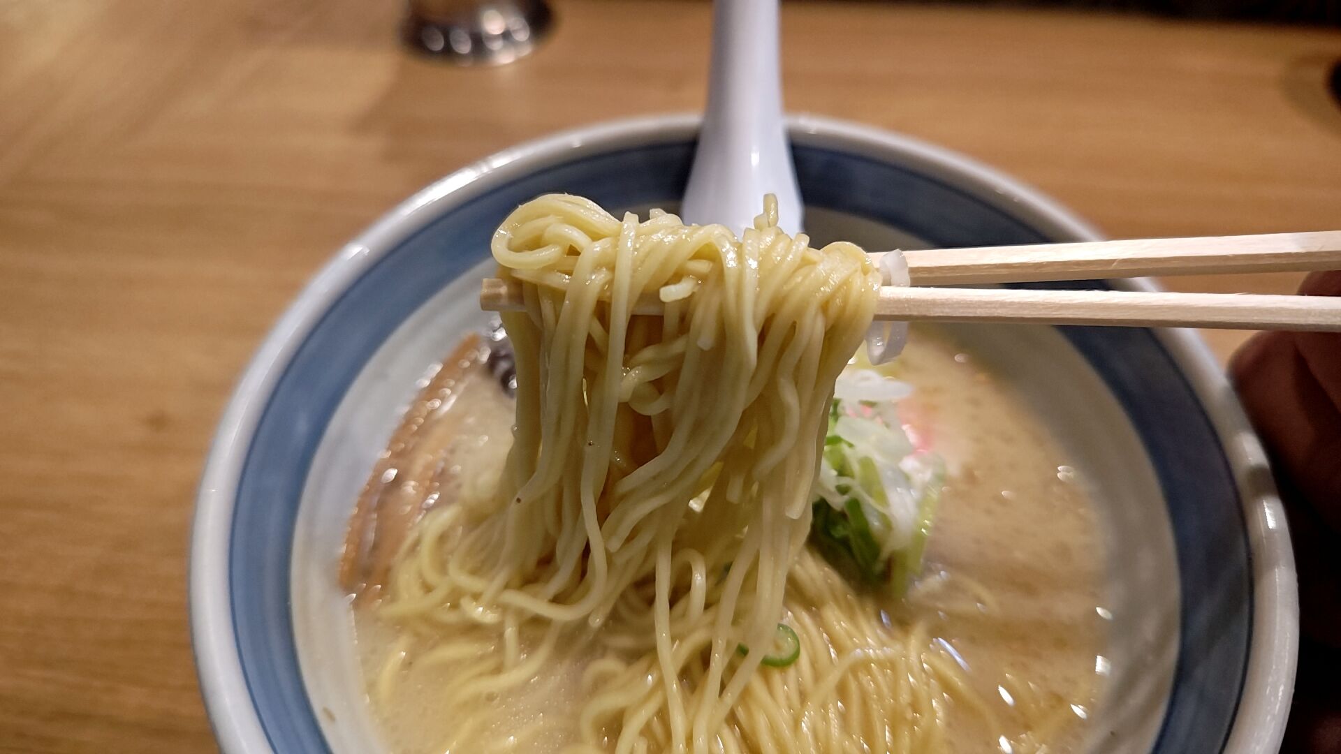 太麺細麺と選べるんですけど、個人的な好みはぷつんと歯ごたえの良い細麺。