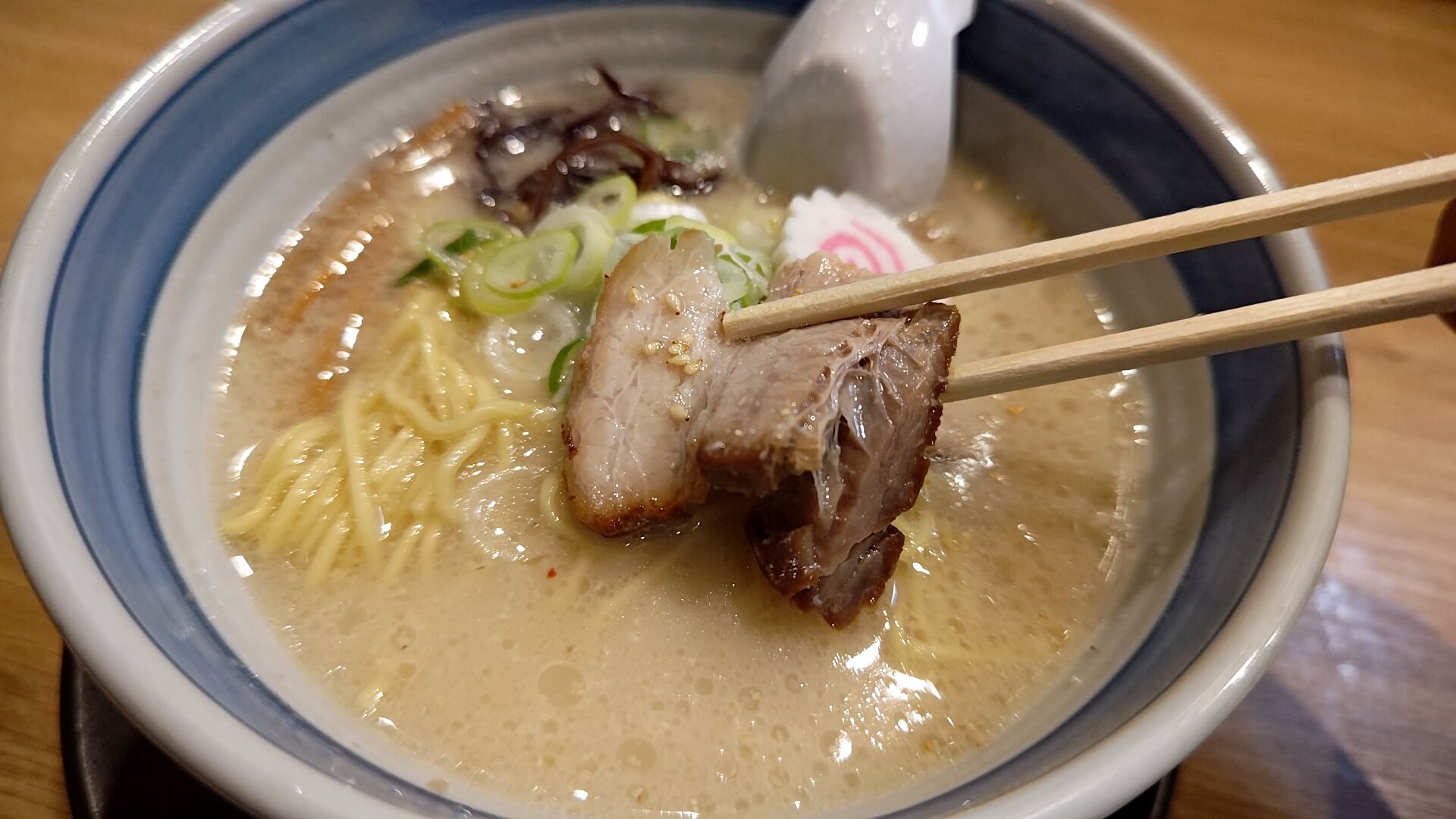 この全くクセの無い旨味が凝縮されたとんこつベースのスープは最高だわ。
