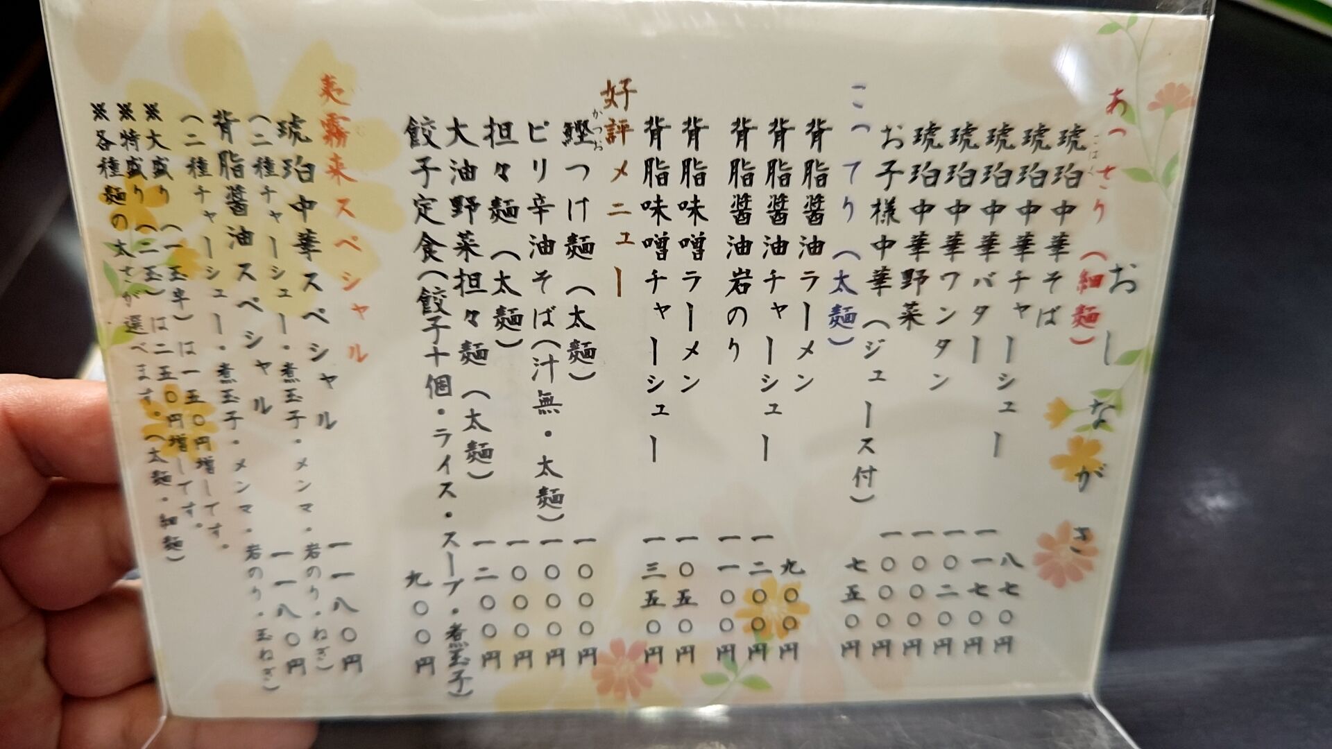 メニューはこちら。