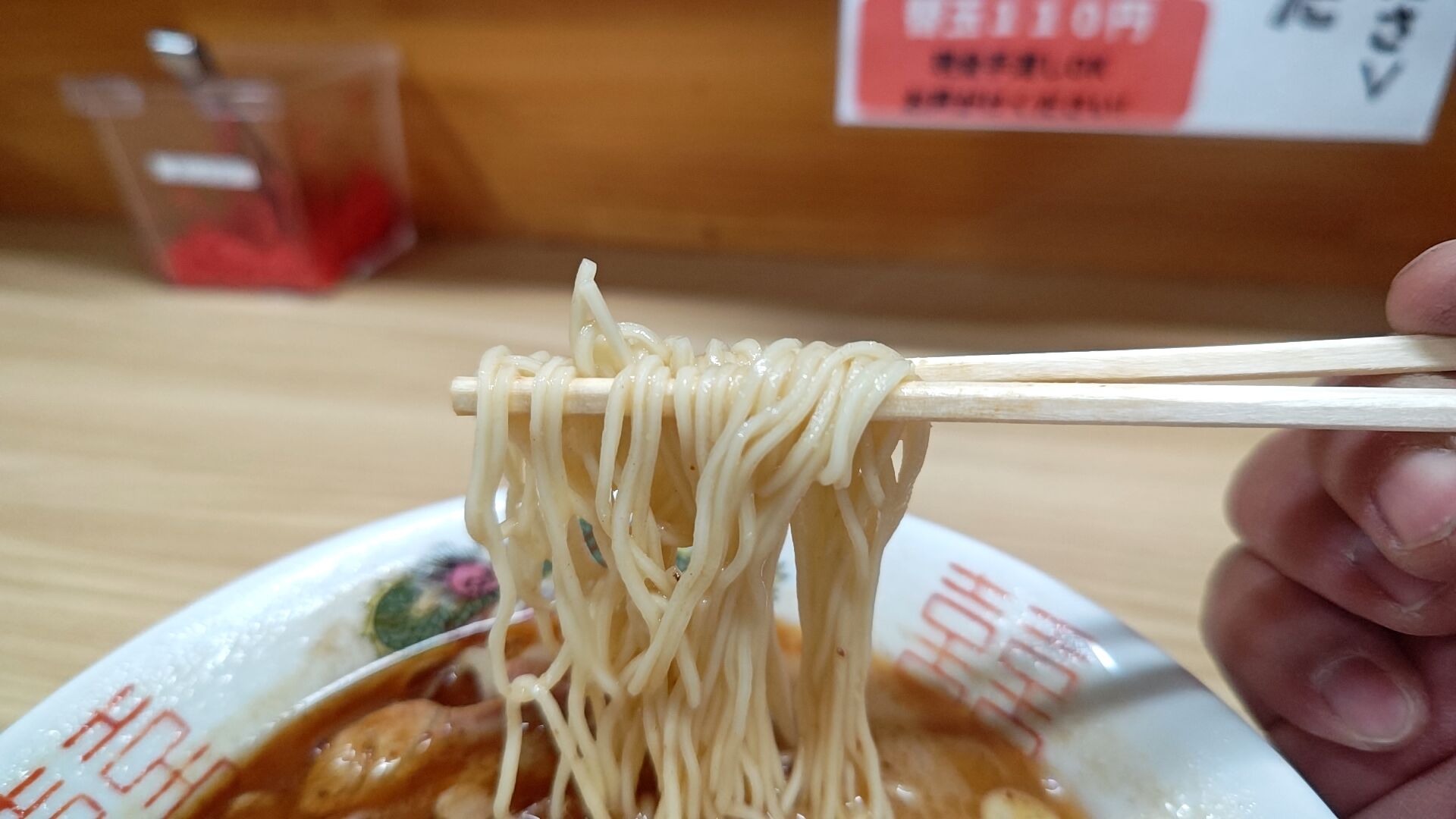 良いタイミングでオーダーしておいた替え玉をポチャンとスープへ。