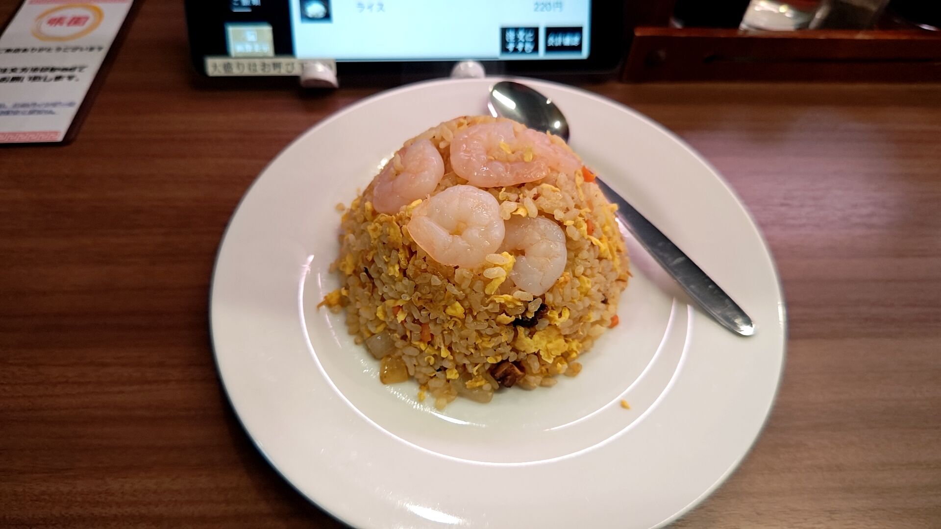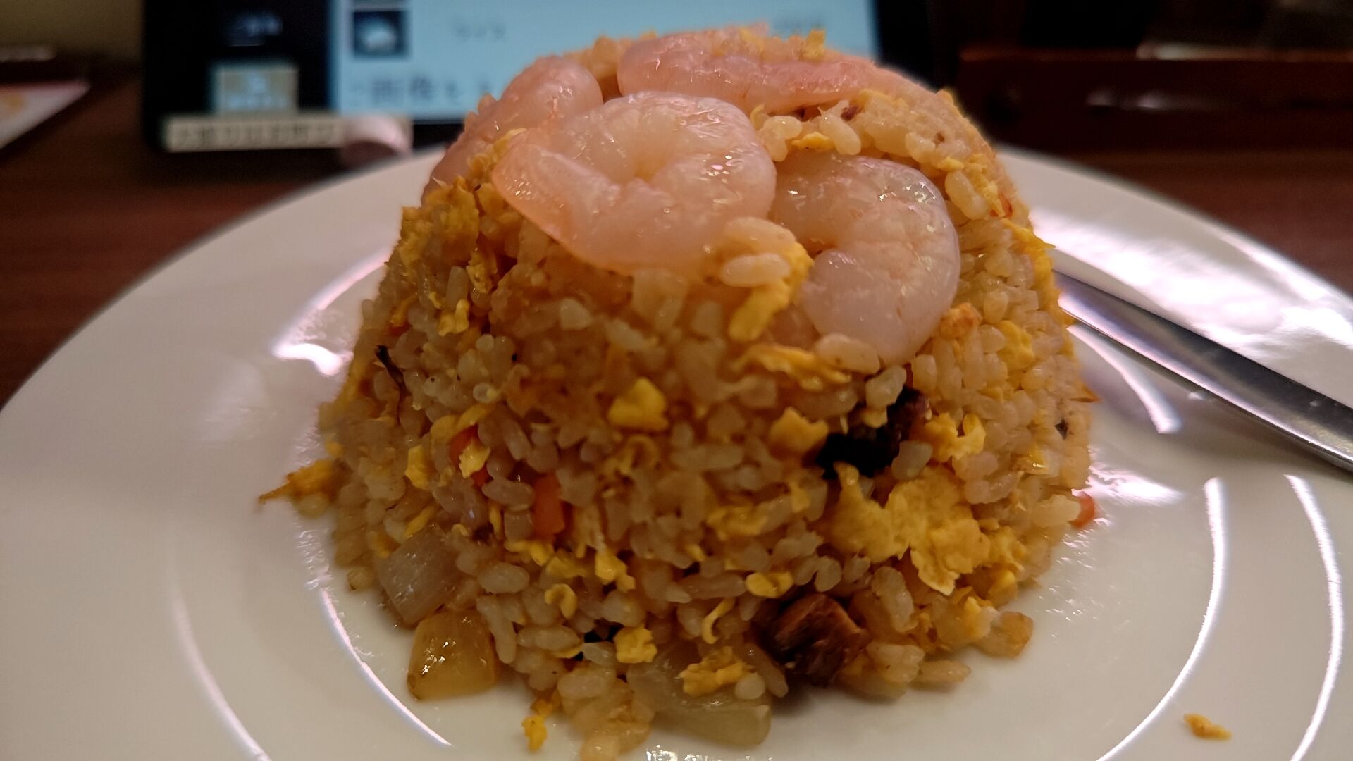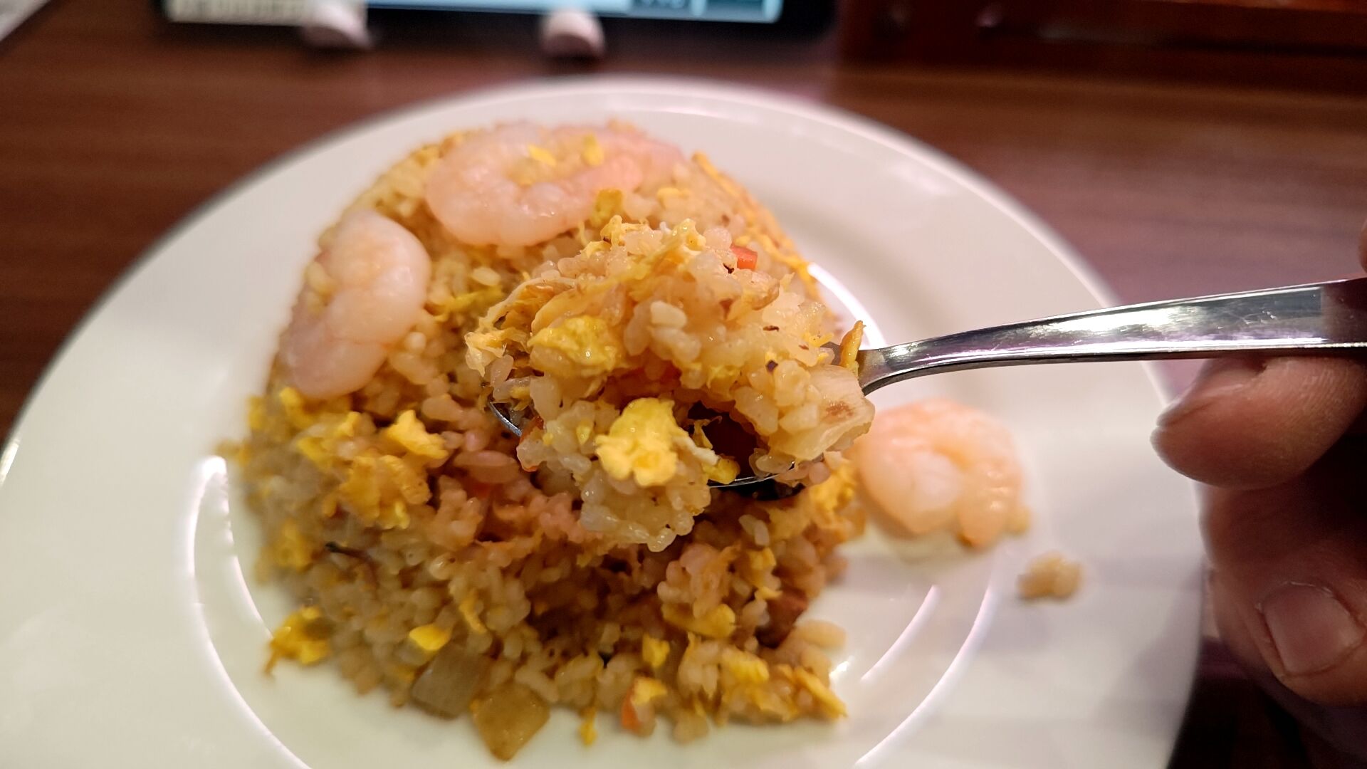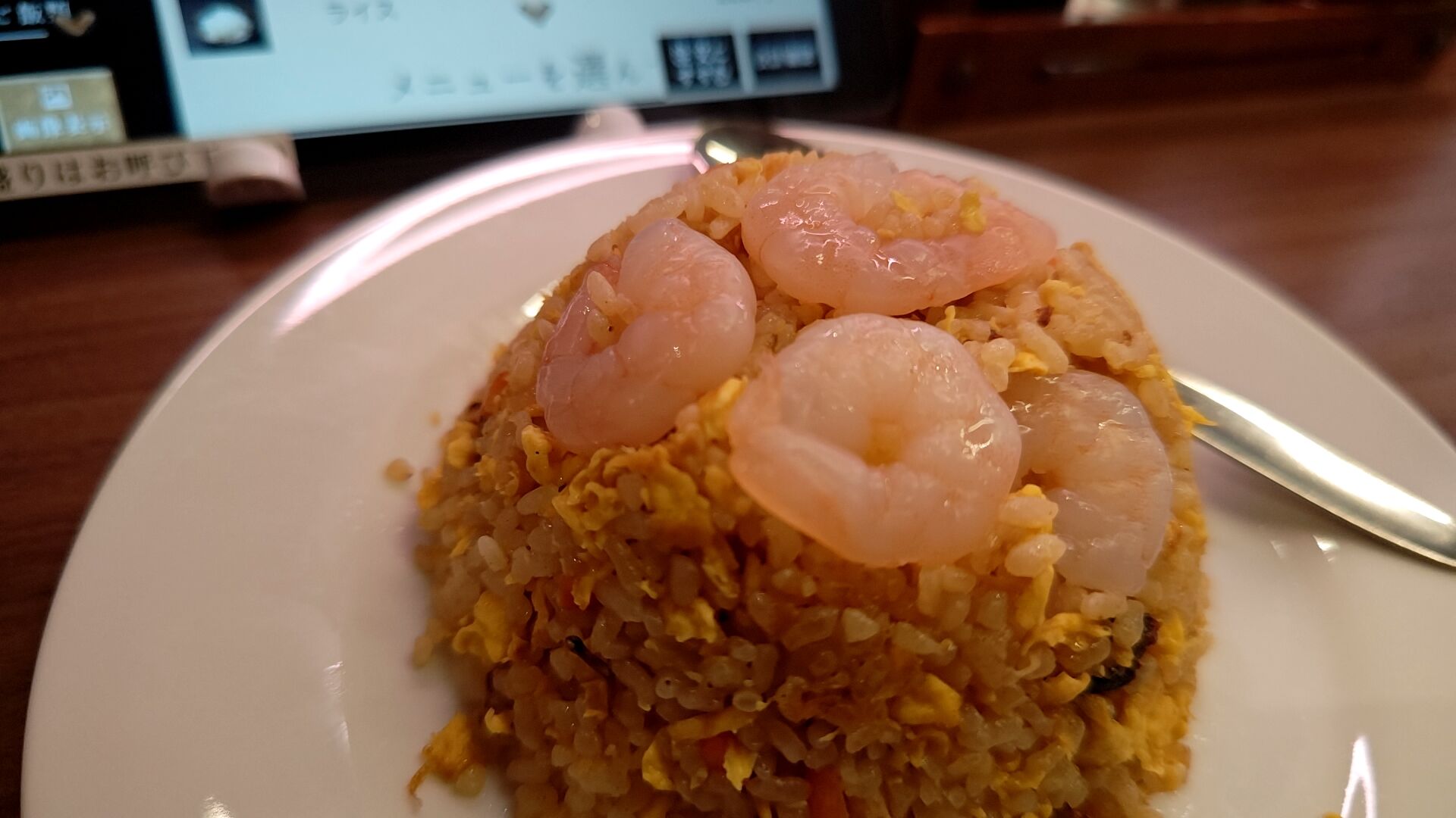 来たっ!スピーディーにえび炒飯運ばれてきた!