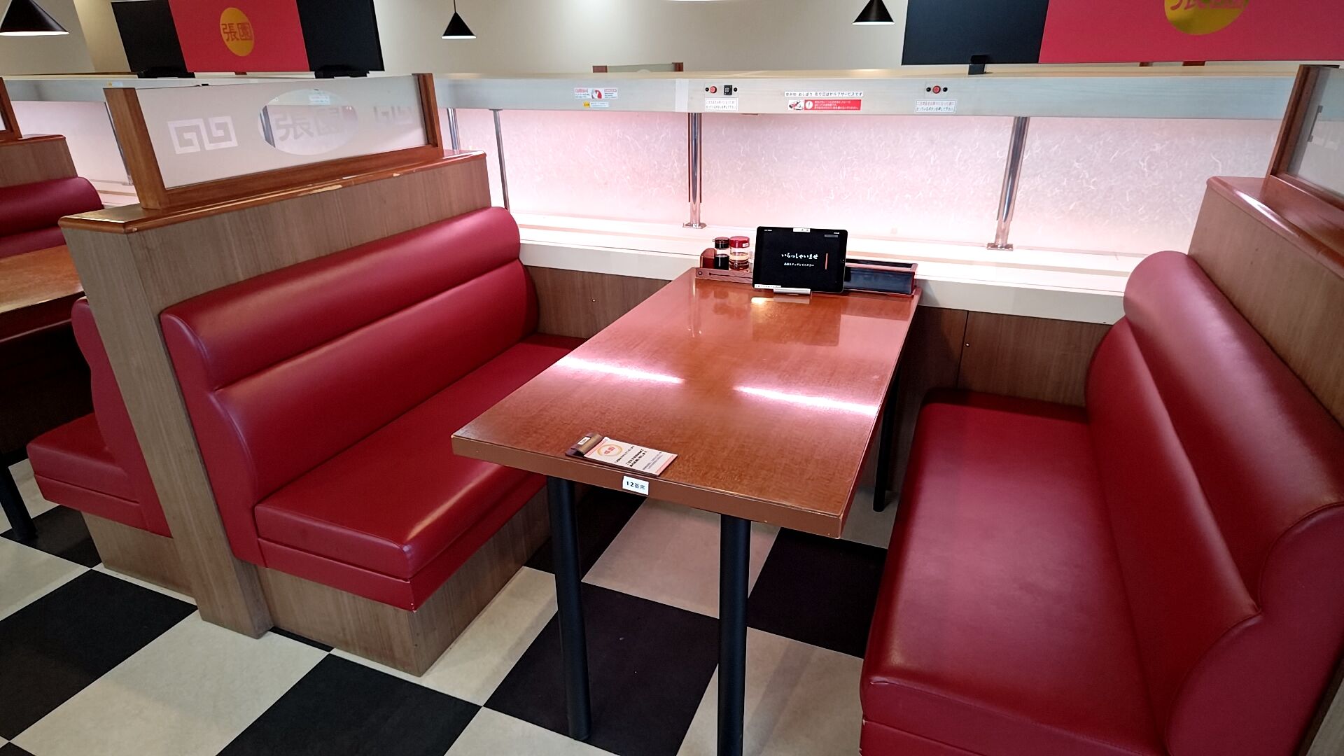 店内はやっぱり一時回転寿司で流行った料理が席まで自動で運ばれてくる装置が!