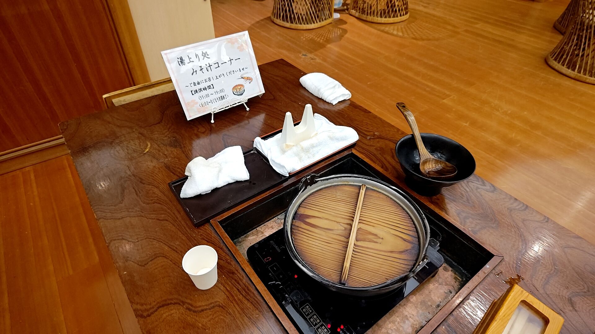 早速温泉にゆったり寛いだら、湯上がりはドリンクと味噌汁!