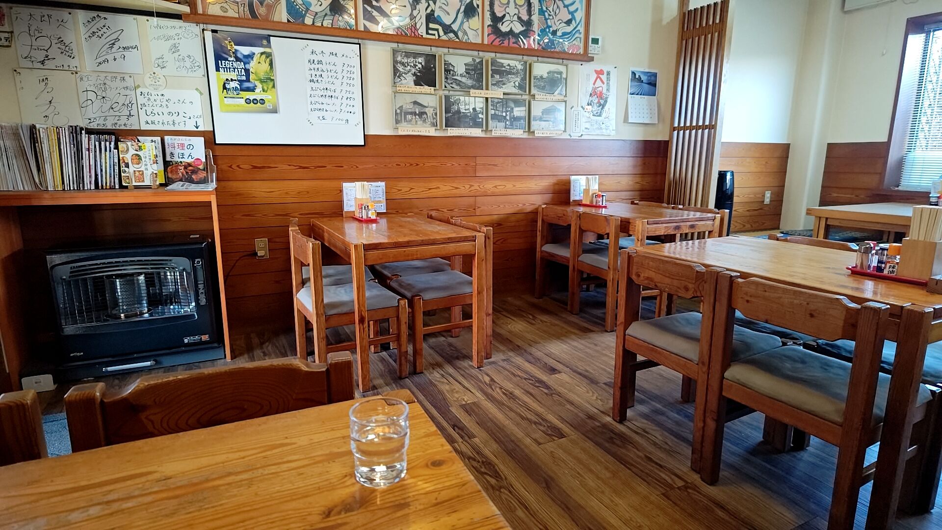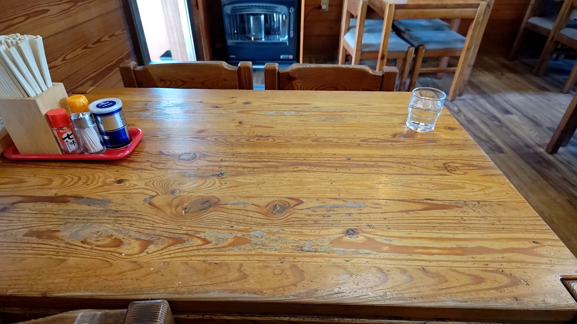年季の入ったテーブルが良いし落ち着くわ。